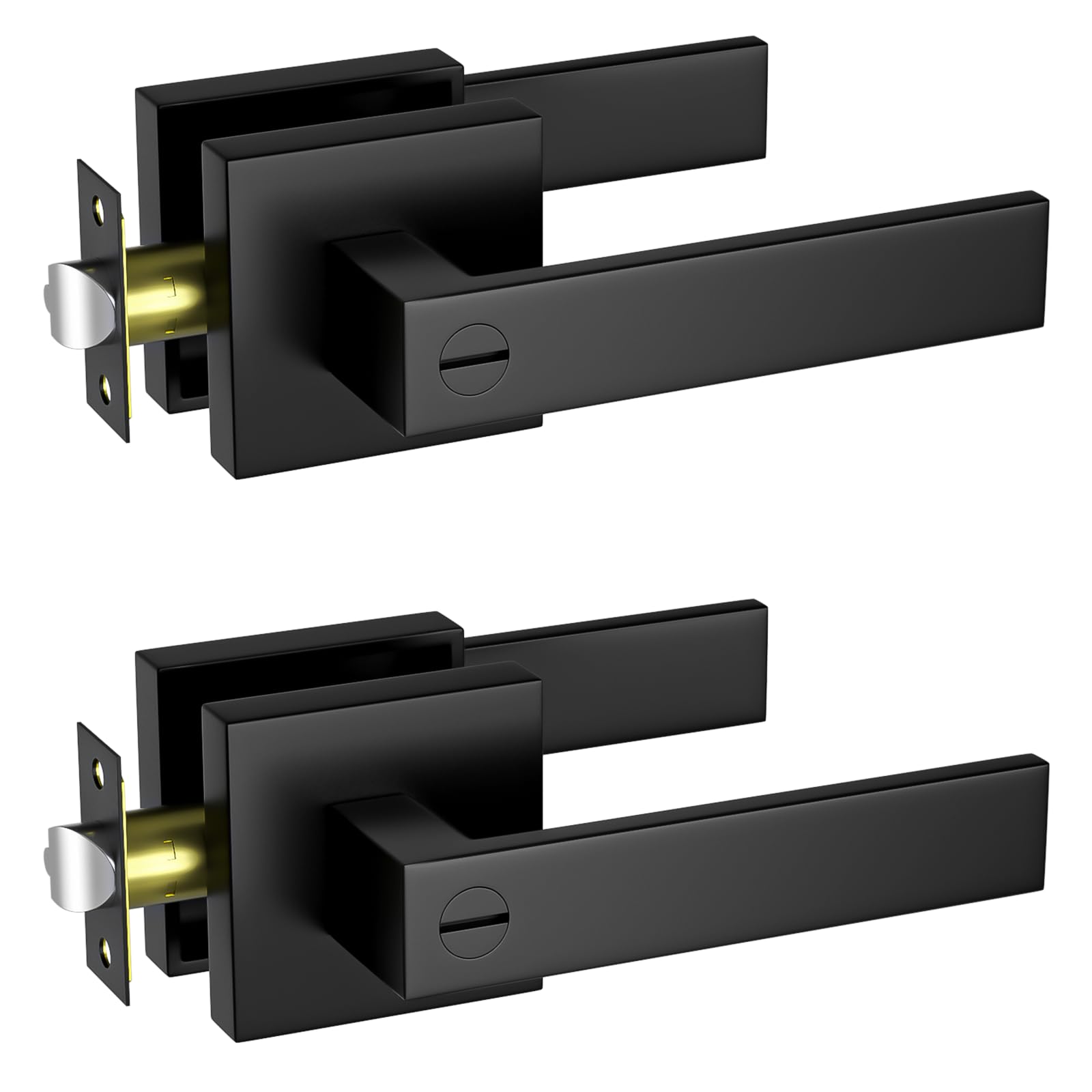 - Privacy Door Levers: The interior door handle is designed with thumb-turn button to lock the door, meeting the needs of privacy and security. The exterior door handle supports emergency unlock with a screwdriver or a coin. Our door handles are widespread use in bedroom, bathroom, play room, office and other places with privacy needs. If you are looking for a nice indoor door handles, these could be perfect for you.