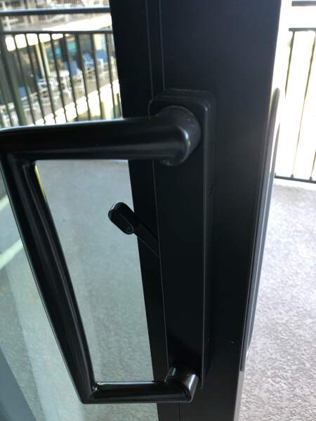 Upgrade your sliding patio door with this PGT / CGI Keyed Sliding Door Handle Set (SM5700-WH) designed for doors with 4-15/16" center-to-center hole spacing.