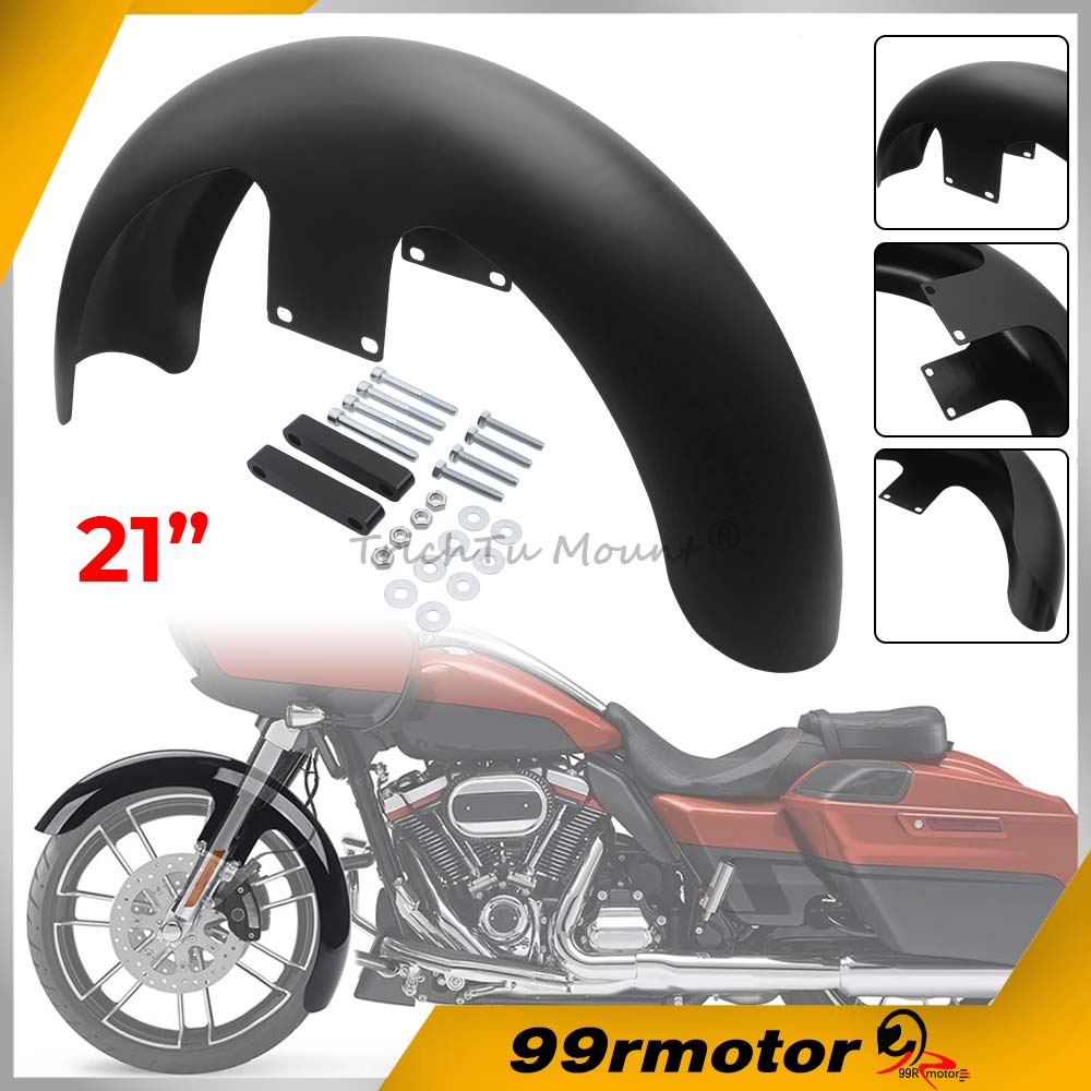 The wrapped around design 21 inches front fender fit for Harley Touring models and custom baggers.