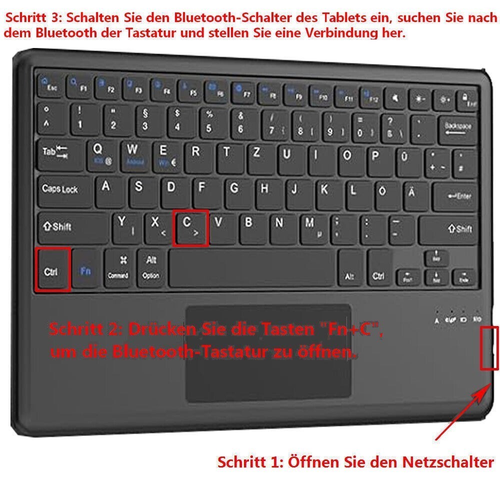 - ⌨ Verwandeln Sie Ihr Tablette in ein Laptop - Das deutsche QWERTZ-Layout der Tastatur erleichtert die Texteingabe erheblich und ermöglicht ein komfortables Schreiben von E-Mails, Textnachrichten und Dokumenten.