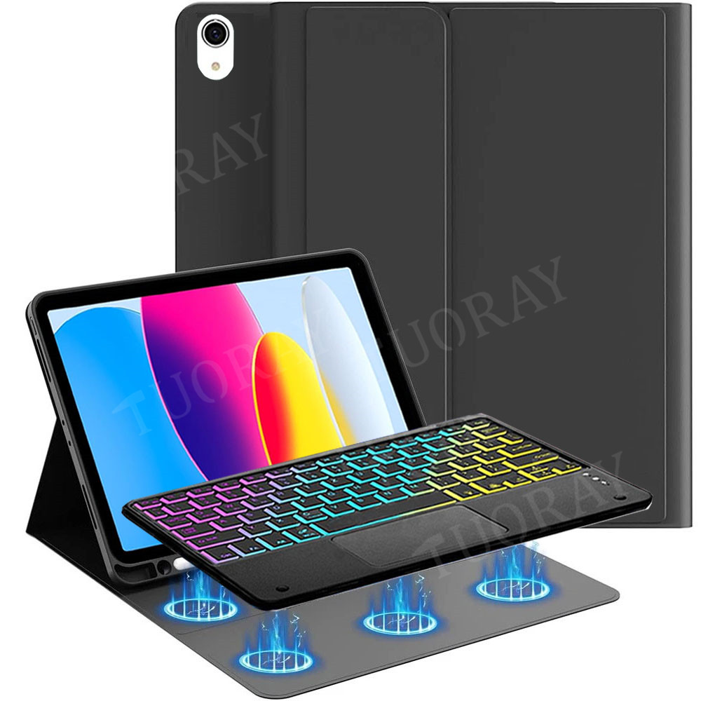 【 3-Zonen 7-Farben-Hintergrundbeleuchtung & Abnehmbare Tastatur】- Tastatur mit Hintergrundbeleuchtung, 3 Zonen + 7-Farben-Hintergrundbeleuchtung mit 3 Helligkeitsstufen einstellbar. Praktisch für Tastaturbedienungen bei schwachem Licht, um Ihnen einen anderen visuellen Genuss und angenehmes Tipperlebnis. 2 en 1 Design mit Tastatur und Lederhülle für Samsung Tab. Die Tastatur und das Gehäuse können getrennt werden, um sie an unterschiedliche Verwendungen und Umgebungen anzupassen
