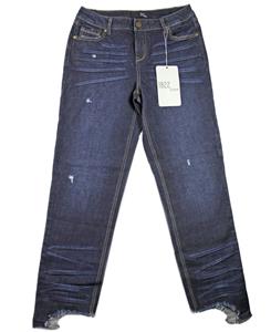 Women's Girlfriend Distressed Stretch Denim Jeans - "Bailey" - With Distressed Cuffs