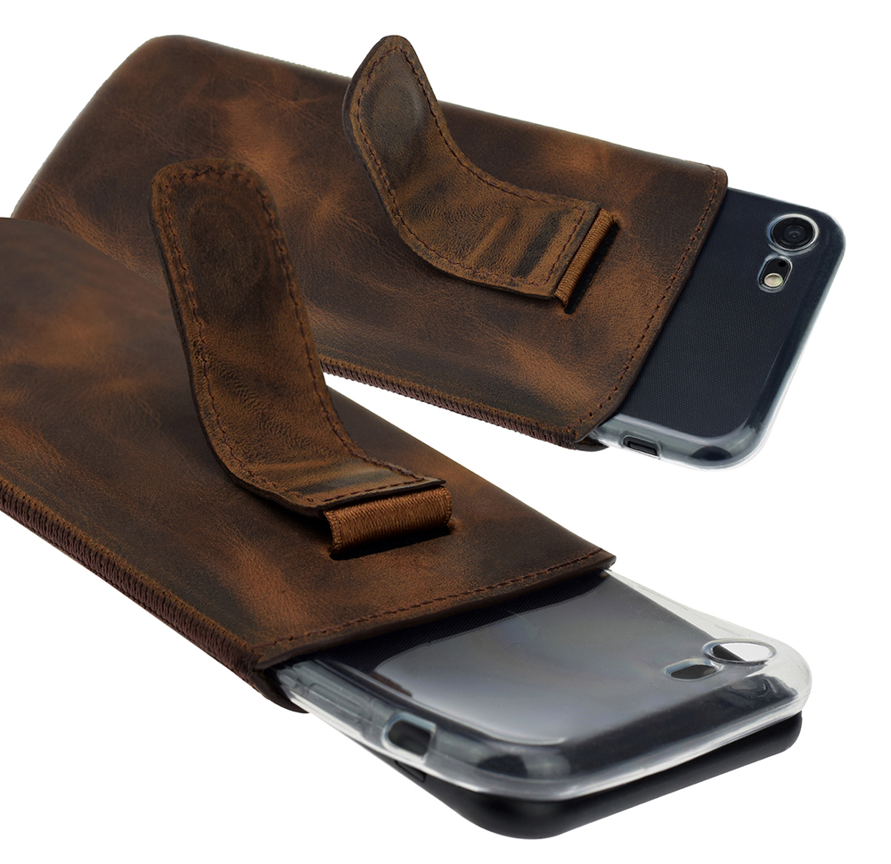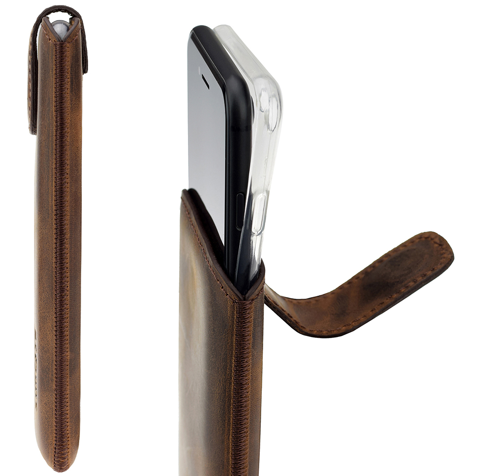 Nos sacs en cuir Suncase sur mesure offrent votre protection optimale de smartphone et peuvent être transportés idéalement dans des vestes ou des sacs à main.