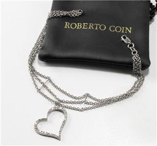 Roberto Coin Tiny Treasure 3-strand18K white gold diamond heart bracelet. Item total weight is approximately 5.13 grams. Measures approximately 7 inches long. The heart measures approximately 0.8 inch x 0.77 inch (all measurements are from widest to widest). Total diamond weight is approximately 0.22ctw. It is hallmarked as shown. Excellent condition. Item comes with Roberto Coin dust pouch and in a nice presentation box as shown. This piece has been authenticated through eBay Authentication Program.