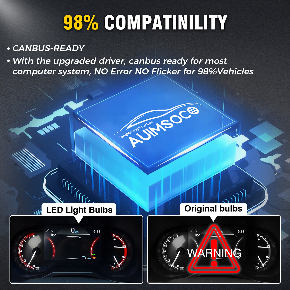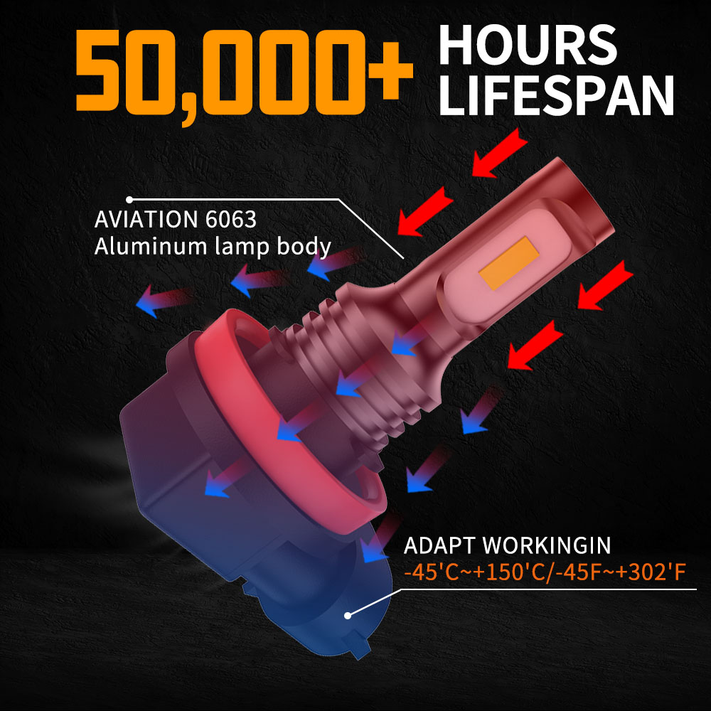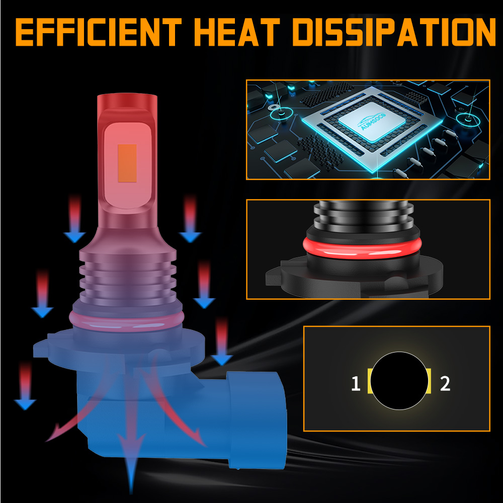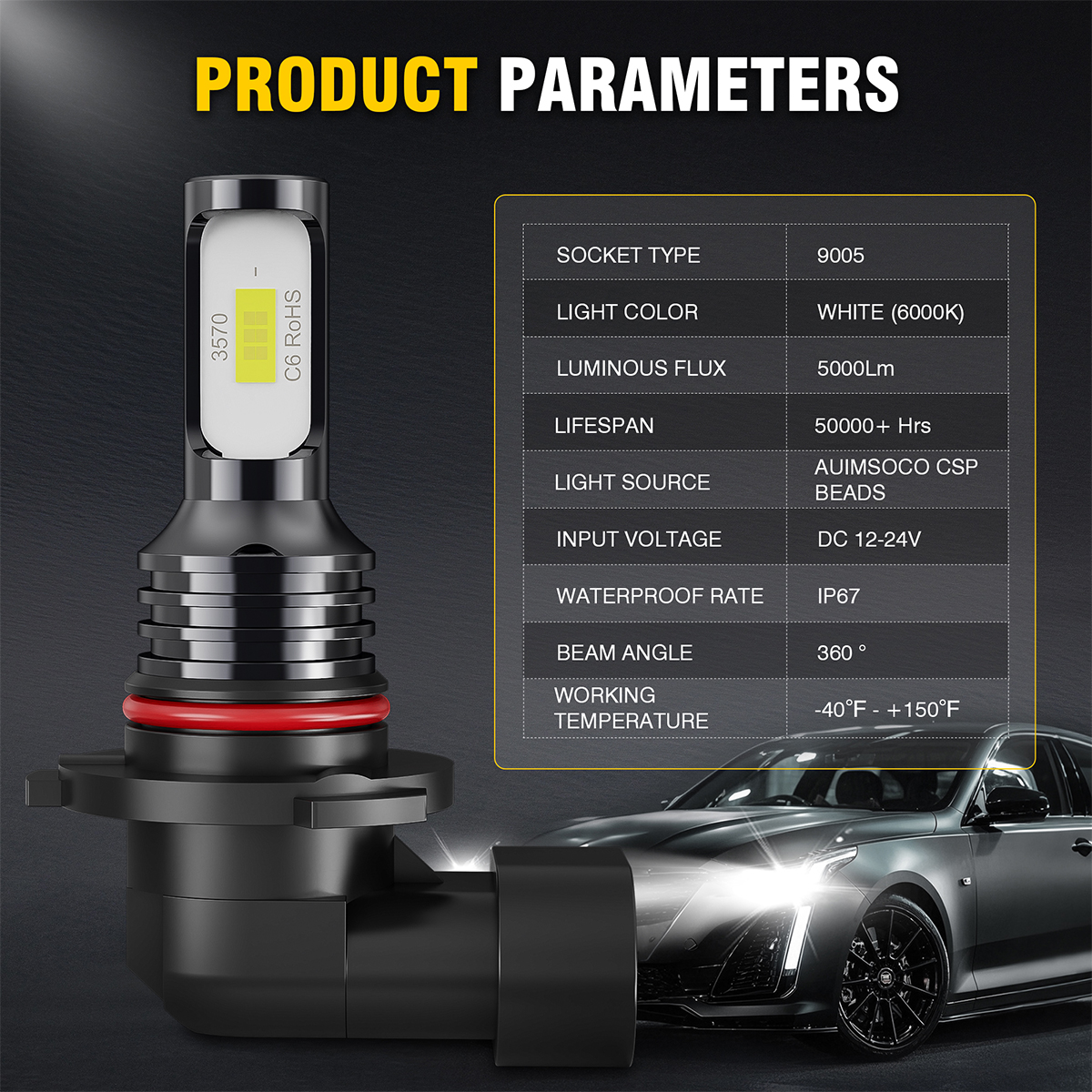 200% Brighter Than Halogen - With advanced double-sided LED CSP chips, AUIMSOCO h11 9005 led offer 360-degree illumination, super-bright cool white