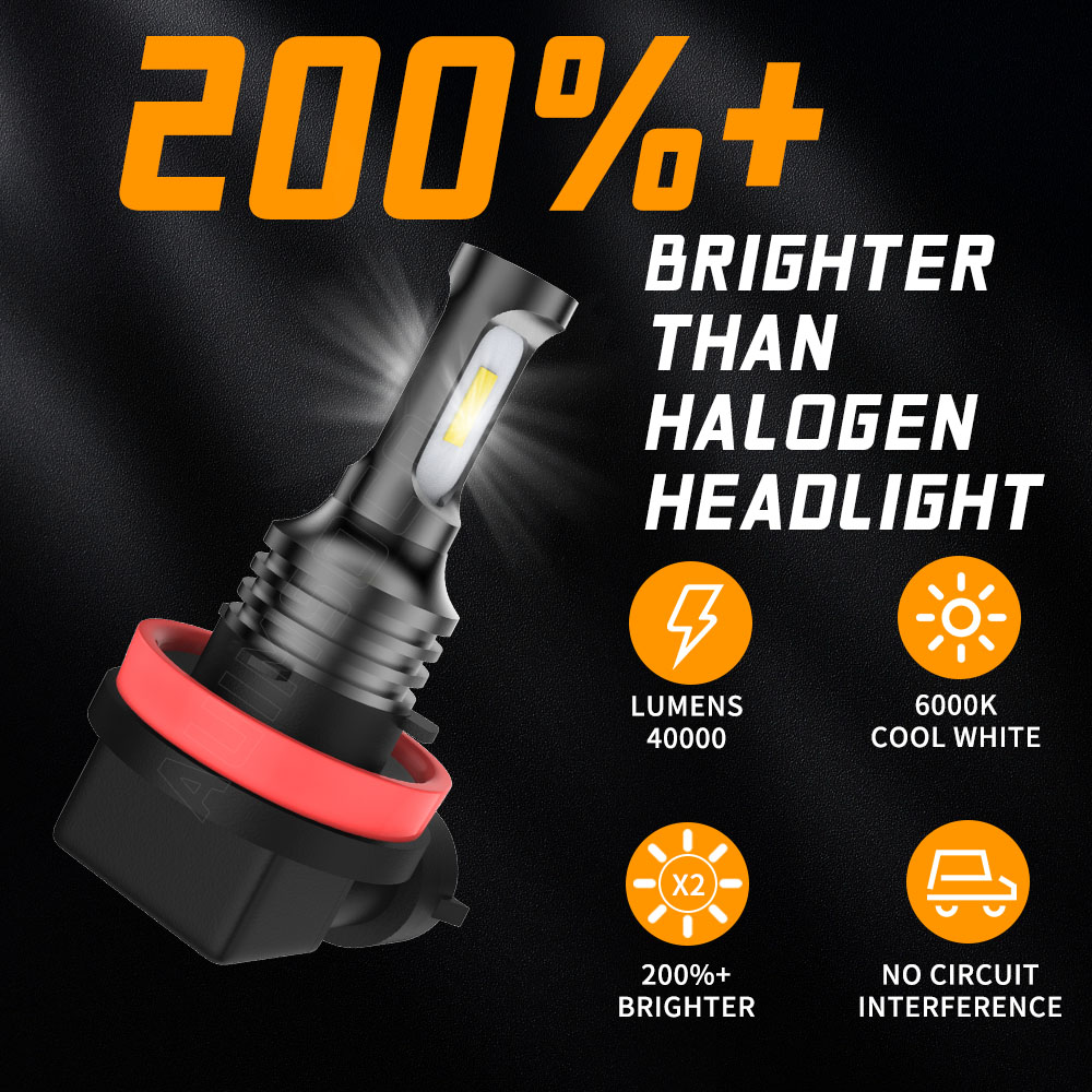 Less 10 Mins Installation - 1:1 mini size design close to halogen lamp without additional drivers and wiring harness. Simply remove your halogen bulbs then plug the h11 bulbs in, no more modifications!