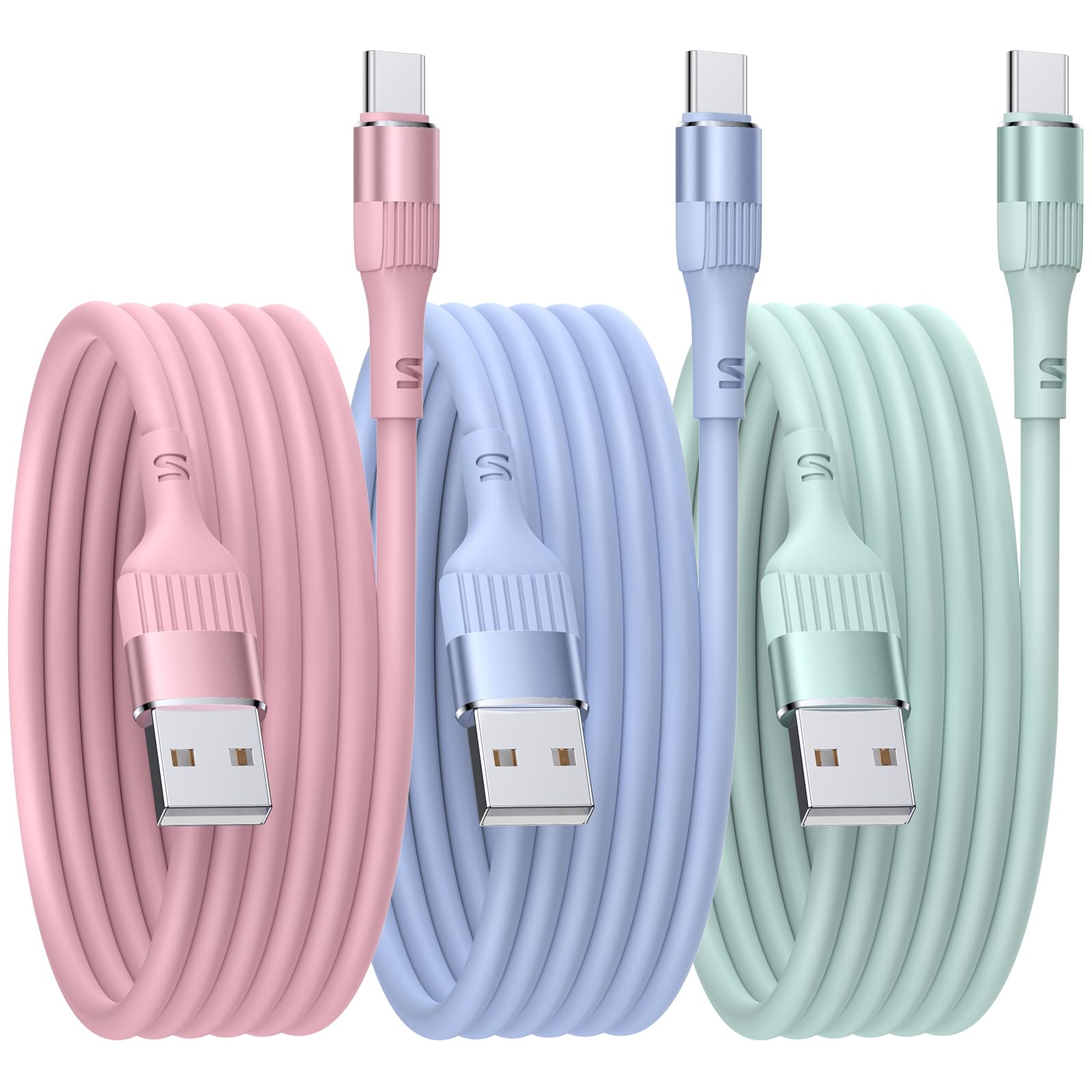 Nebite USB to C Cable 3PACK 3M Extra Long 3PACK10FT, Blue,Pink,Green
