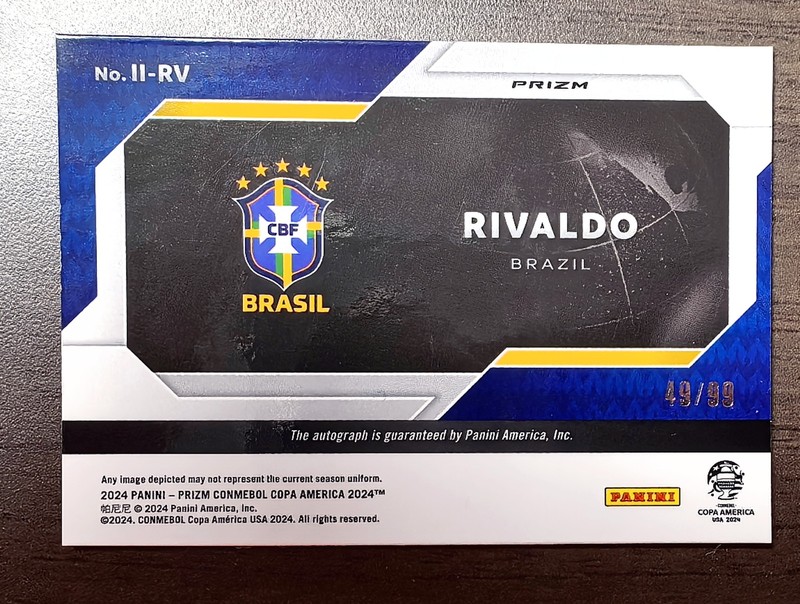 2024 Panini Copa America Prizm Rivaldo International Ink Silver Auto /99 Brazil