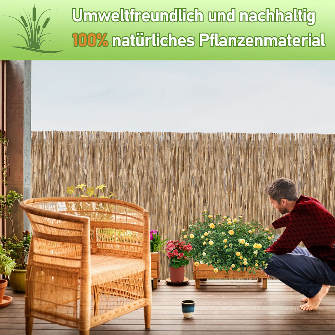 Die Schilfrohrmatte besteht aus natürlichem Schilfrohr und passt perfekt in Gärten, Balkone und Grünflächen, um eine harmonische und natürliche Außenatmosphäre zu schaffen.