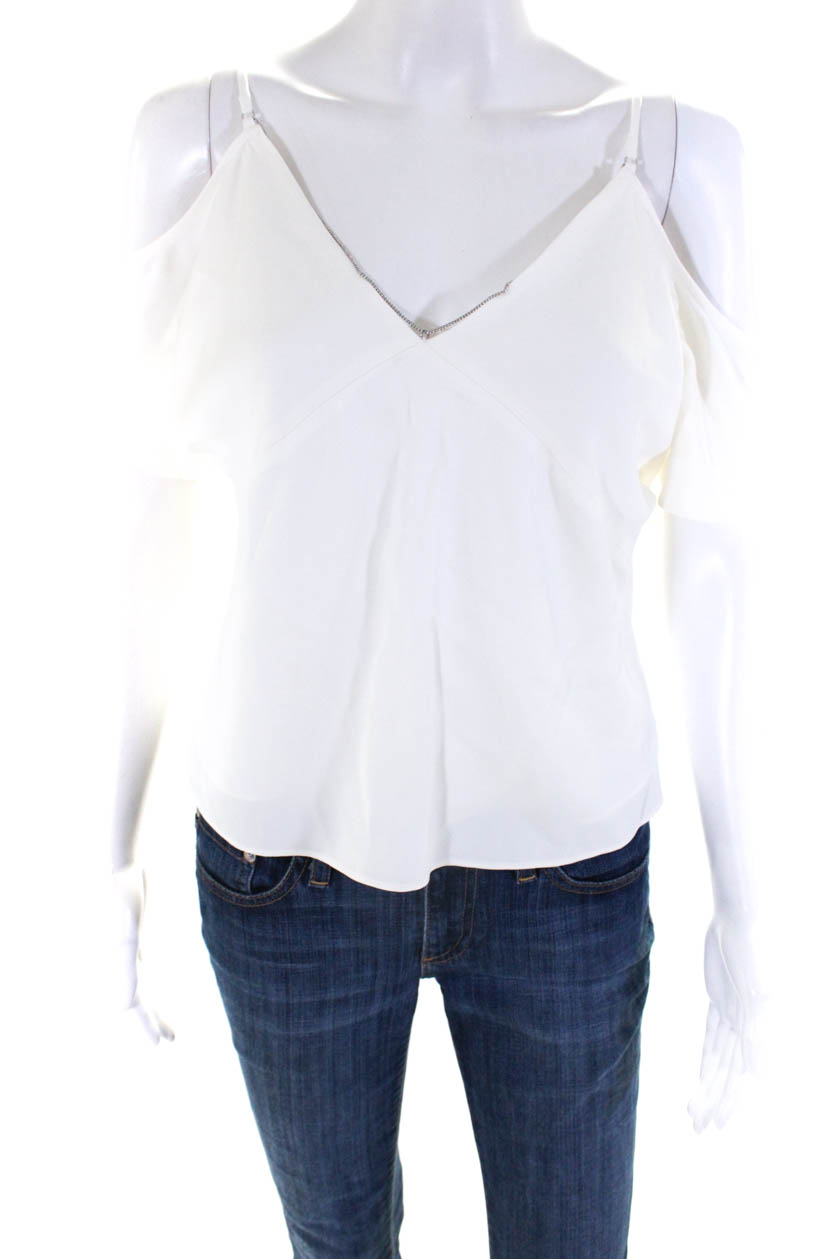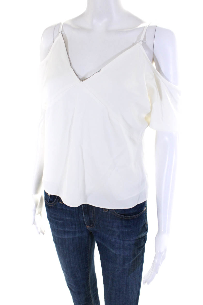 T Alexander Wang Women's Cold Shoulder V-Neck Chain Blouse White Size 0