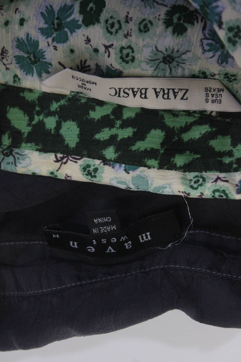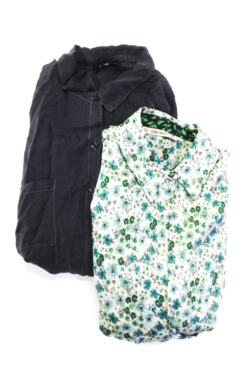 Zara Maven West Womens Floral Print Button Long Sleeve Tops Green Size S M Lot 2