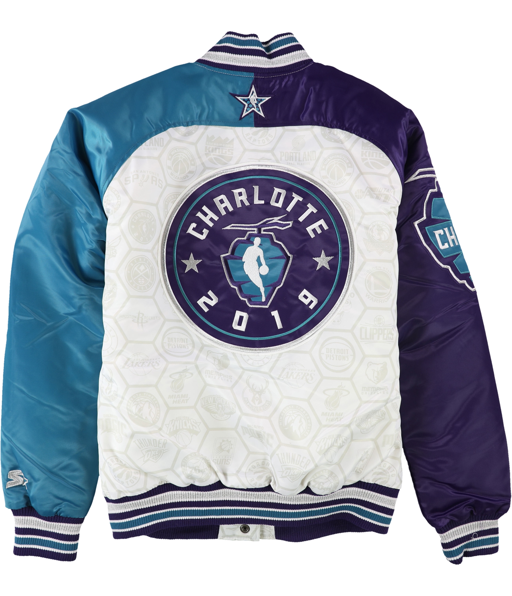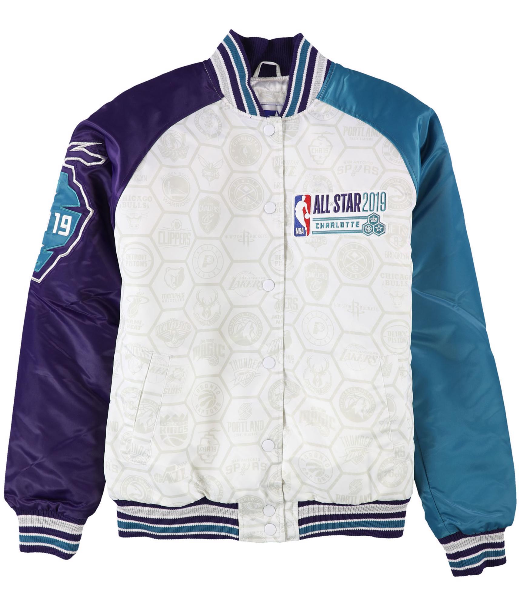 Showcase your love for basketball with the STARTER Women's 2019 NBA All-Star Varsity Jacket. This medium-weight jacket is crafted from 100% polyester, promising durability and comfort. The multi-tone pattern, coupled with the applique, logo, patches, and snaps, sets it apart.