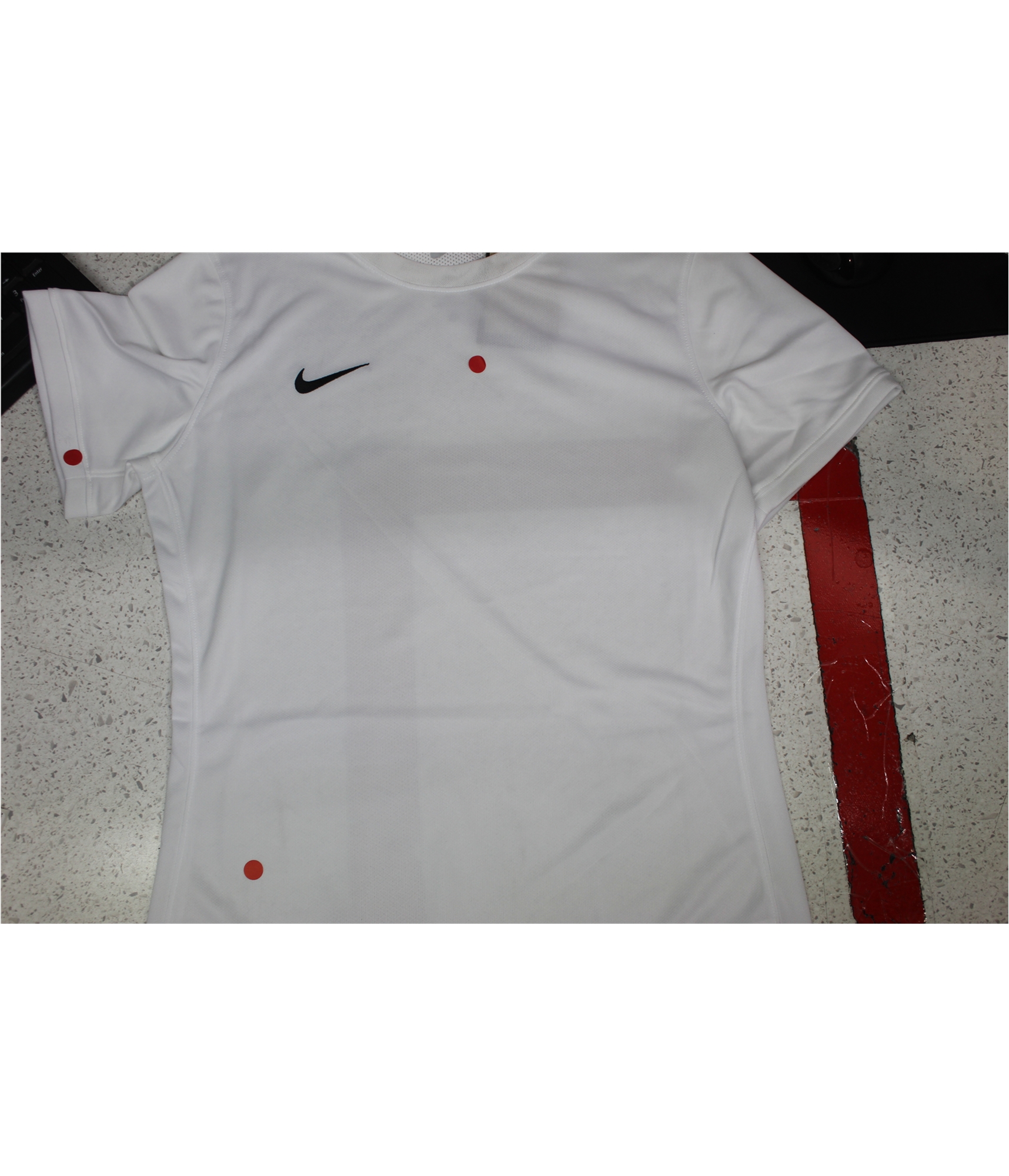 Product Details Gender: Womens Fit: Slim Fit Material: 100% Polyester Sleeve Length: Short Sleeve Collar Style: Crew Neck Pattern: 2-Tone Density: Light Weight Season: All Seasons Occasion: Athletic Theme: Sports Performance: Soccer Country of Manufacture: Thailand