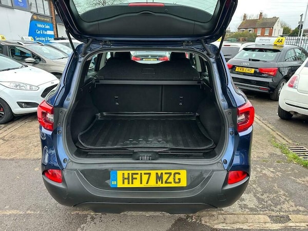 This 2017 Renault Kadjar TCe Dynamique Nav boasts exceptionally low mileage for its age, having covered just 36,000 miles with only one owner from new. This well maintained example comes with a full service history, with the last service completed at 35,000 miles on 15 January 2026, and a clear vehicle history check. It is equipped with desirable features including 19in Diamond Cut Apollo alloy wheels, a Convenience Pack, and the Climate Pack which includes automatic headlights and climate control. For seamless connectivity, it also features Android Auto and Apple CarPlay integration. The Kadjar Dynamique Nav is powered by an efficient 1.2L petrol engine, meeting Euro 6 emissions standards. This particular model offers excellent fuel economy, achieving up to 50 miles per gallon, and benefits from a low insurance group and low CO2 emissions, indicating it is more economical to run than many similar vehicles. A 12 month MOT will be provided on purchase, and the vehicle is offered with a 3 month warranty for your peace of mind.