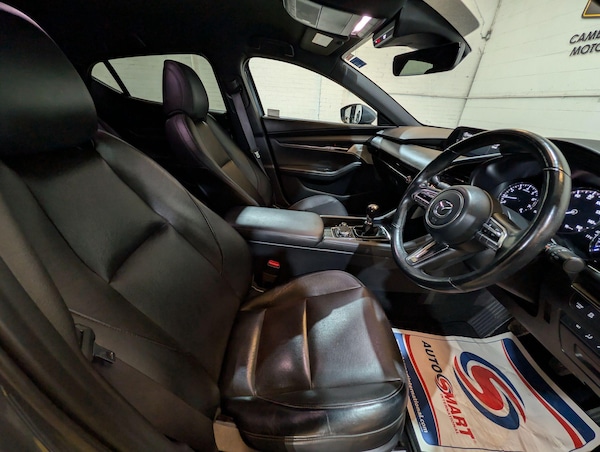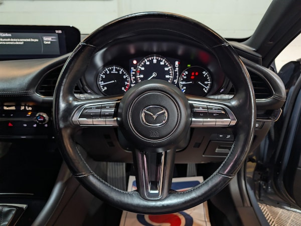 5 MAIN DEALER SERVICES+FRESH SERVICE, This 2020 Mazda3 SKYACTIV-G GT Sport is a superb example, having been owned by just one careful keeper. This stylish hatchback features a responsive 2.0 litre petrol engine, meeting Euro 6 emissions standards. Inside, you'll find a wealth of technology designed for your convenience and safety, including integrated Bluetooth, Apple CarPlay and Android Auto for seamless smartphone connectivity, and a heated steering wheel for those colder mornings. Parking is made easier with front and rear parking sensors, while the advanced Blind Spot Monitoring system with Rear Cross Traffic Alert, including Blind Spot Assistance, provides an extra layer of security on your journeys.The Mazda3 GT Sport offers a compelling package that stands out from the crowd. Its low CO2 emissions contribute to a more environmentally conscious drive, and its low insurance group rating makes it an economical choice for many drivers. You'll also appreciate the generous boot space, offering ample room for shopping or luggage. For those who enjoy a bit of spirited driving, this Mazda3 can accelerate from 0 to 62 miles per hour in 10.4 seconds, demonstrating a good balance of performance and efficiency.