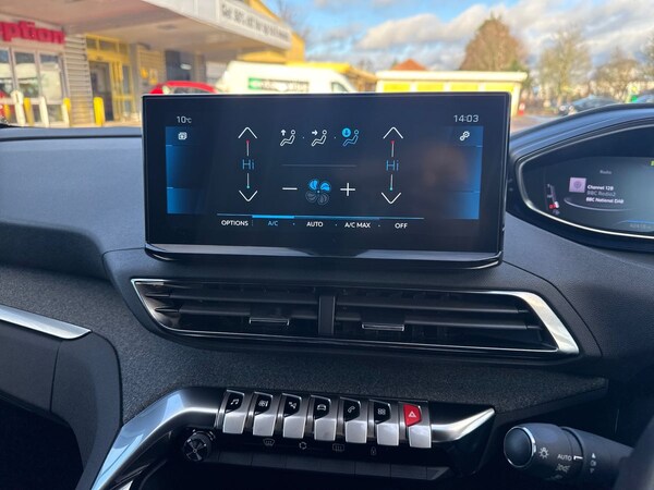 ..3D connected navigation with 10'' HD touchscreen + voice recognition system, Apple car play and Android auto, Bluetooth telephone connection, Drive mode selector (Eco, Normal and Power), Driving timer alert system, Emergency services call system, Extended traffic sign recognition, Exterior temperature indicator with ice warning, Front and rear parking sensors, Lane departure warning system, Multi function trip computer, Peugeot i-cockpit with configurable 12.3'' headup digital instrumental panel and compact sports steering wheel, Speed limit recognition and recommendation, Dynamic stability control and electronic anti-skid system, 6 speakers radio with mp3 compatible, Bi Tuner radio including DAB, USB socket, Aluminium front door sills, Aluminium roof rails, Automatic activation of hazard warning lights, Black diamond door mirror covers, Black diamond roof, Black front wing trim with chrome detail, Black rubber side window trim, Body colour door handles, Body protectors in black, Chrome rear bumper scuff plate, Classic frameless design in front radiator grille, Dark tinted rear side and tailgate windows, Diamond black rear spoiler (roof), Eco LED headlights, Electric adjustable heated door mirrors, Front and rear door and sill protectors with polished stainless steel insert, Front windscreen wiper with magic wash cleaning system, Gloss black B and C pillar and aerodynamic deflector trim, Gloss black rear cluster connecting strip, Gloss black windscreen trim, Headlights left on audible warning, Heated rear windscreen with integrated antenna, LED daytime running lights in fang style, LED front indicator, LED rear number plate lighting, LED side indicator lights integrated into door mirrors, LED third brake light, One touch electric front/rear windows with pinch protection, Power folding door mirrors, Rear LED PEUGEOT signature Claw Effect lights (with daylight function) with clear lens and scrolling LED direction indicators, Rear side wing doors, Rear windscreen wiper with auto activation when reversing, Silver front lower bumper trim, Stainless steel door sill scuff plates, Stainless steel roof arch trim, 2 cupholders in front centre console, 2 rear reading spotlights, 2 separate seats in 3rd row, 2nd row window blinds, 3 bench rear seats in 2nd row, 3 x 12V power sockets, 4 Grab handles retractable and damped, Aluminium pedals, Automatic dual zone climate control, Aviation tables on seat back of first row, Blue ambient lighting for connecting zone, Blue