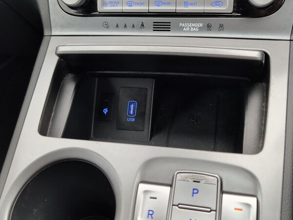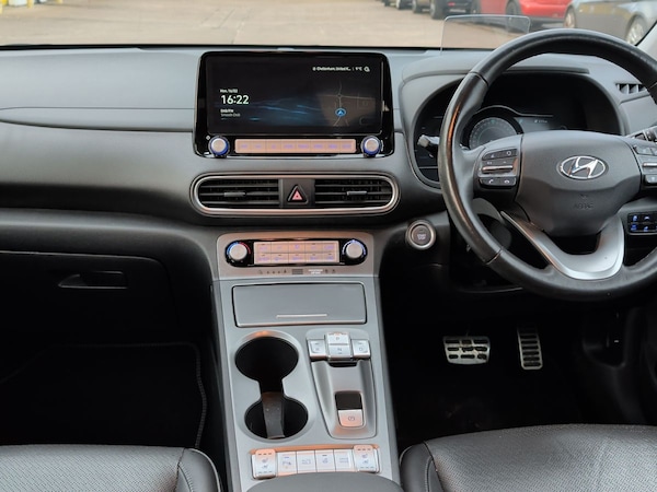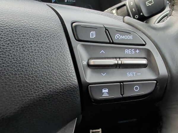..10.25'' touchscreen satellite navigation includes traffic messaging channel, mapcare, live services and bluelink, Battery status check, Blind spot monitoring, Bluetooth connectivity with voice recognition, Cruise control - smart adaptive speed control with stop and go function, Digital clock, Drive mode selector, Driver attention alert system, Driver's supervision instrument cluster with 7'' TFT display, eCall emergency call system, Forward collision warning, Front parking sensor, Head up Display, Intelligent speed limit warning, Lane follow assist, Lane keep assist, Parking system with rear camera and guidance system, PAS, Rear cross traffic alert, Rear parking sensor, Smartphone integration with Apple CarPlay and Android auto, Smartphone wireless charging plate, Windscreen washer fluid sensor and warning indicator, 7 pin charging cable, Battery heater, Vehicle Stability Control (VSC), DAB Digital radio, Krell premium audio system with 8 speakers and subwoofer, RDS radio with MP3 player, Steering wheel mounted audio/phone controls, USB/aux input socket, Auto dimming rear view mirror, Automatic headlights with dusk sensor, Automatic windscreen wipers with rain sensor, Black grille with chrome surround, Body colour bumpers, Body colour door mirrors and handles, Door mirror integrated indicators, Electric front/rear windows with drivers one touch/anti-trap, Electrically adjustable and heated door mirrors, Front fog lights, Full LED headlights, High beam assist, LED daytime running lights, LED rear lights, Painted anthracite body garnish, Positioning Lights - LED, Power folding door mirrors, Privacy glass - Rear windows and tailgate, Rear roof spoiler with integrated LED brake light, Roof rails, Silver skid plates, Solar glass with windscreen shade band, Static cornering light, 60/40 split folding rear seat, Adjustable head restraints, Automatic climate control with defog system for front windscreen, CCS Combo rapid charge port (50kW), Centre interior light, Chrome interior door handles, Door scuff plate, Driver and passenger front seat pockets, Driver's electric adjustable lumbar support, Driver's seat electric adjustments, Driver's seat electric height adjustment, Driver/passenger sunvisors and illuminated vanity mirrors, Front cup holders, Front interior light, Front passenger's seat electric adjustments, Front passenger's seat electric height adjustment, Heated front seats, Heated outer rear seats, Heated steering wheel, Height/reach adjustable