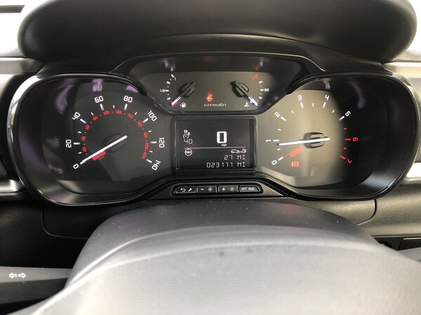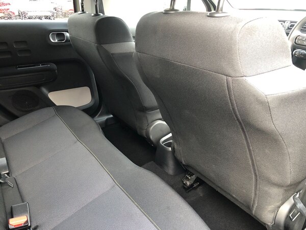 ..Coffee Break Alert, Cruise control + speed limiter, eCall emergency call system, Exterior temperature display, Instrument cluster with white LCD and analogue gauges, Multi function trip computer, Reversing camera, Variable assistance power steering, USB connection, 3D rear light signature, Airbump on side door panel, Auto headlights, Automatic activation of hazard warning lights, Badge under exterior door mirrors, Body colour bumpers, Body colour door handles, C column sticker, C-Series Edition roof sticker, Chrome decoration on front face, under chevrons and around daytime running lights, Citroen illuminated signature in LED headlights and LED daytime running lights, Dark tinted tailgate and rear side windows, Electric folding and heated door mirrors, Fog lights integrated into front bumper, Front sequential electric windows with one-touch open/close and anti-pinch system, LED Headlights, LED third brake light, Matt black finish B pillar, Rear sequential electric windows with one-touch open/close and anti-pinch system, Rear side wing doors, Rear windscreen wiper with intermittent mode linked to vehicle speed and automatic activation when reverse gear selected, Roof colour rear view mirror caps, Standard day night switchable interior rear view mirror, Variable front intermittent wipers, 1/3 to 2/3 split folding rear seat, 12V socket, 3 seat bench in 2nd row, Automatic air conditioning, Boot light, C-Series Edition carpet mats, Driver and passenger's sun visor with courtesy mirror, Driver's seat height adjustment, Front lighting panel with map reading lights, Front seats adjustable with forward back slide and adjustable backrest, Height adjustable front head restraints, Height/reach adjust steering wheel, ISOFIX mounting on outer rear seats with top tether and labels indicating fixing points, Mica cloth upholstery, Parcel shelf, Seatbelt unfastened on the move audible and visual alert for front and rear seats, Single front passenger seat, Soft touch gear lever with leather effect gaiter and overstitching, Standard ambience, Steering wheel with satin chrome elements and audio/telephone controls, Three rear headrests, Upholstered armrest in front and rear doors, Anodised bronze colour pack - C3, C-Series Edition style pack - C3, Safety pack 1 - C3, Visibility pack with automatic lights - C3, ABS with Electronic brakeforce distribution and Emergency braking assistance, Driver and front passenger seatbelts with pyrotechnic pretensioners and force limiters,