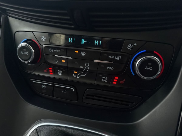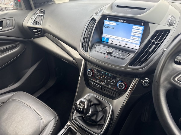 ..Enhanced active park assist including perpendicular parking pull out assist and flank guard, EPAS, Front parking sensor, Rear parking sensor, SYNC Emergency Assistance, Trip computer, Sports suspension, Auxiliary socket for external device, Remote audio controls on steering wheel, USB connection, Auto dimming rear view mirror, Automatic headlights, Black roof rails, Body colour bumpers, Body styling kit, Electric folding mirrors, Electric panoramic glass sunroof, Electrically heated door mirrors, Front scuff plate, LED daytime running lights, Power front and rear windows, Quickclear heated windscreen, Rain sensor windscreen wipers, Rear diffuser, Tailgate wash/wipe, Twin exhaust pipes, 10 way electric adjustable drivers seat, 60/40 split/folding rear back and cushion, Alloy Foot Pedals, Auxiliary power socket in luggage area, Centre console with stowage tray/bottle holder/CD stowage/front and rear 12V power point, Dark headlining, Dinamica/Leather Upholstery, Driver seat lumbar adjustment, Driver/passenger front seatback pockets, Driver/passenger seats fore/aft adjustment, Dual electronic automatic temperature control, Floor mats with contrast stitching, Folding rear centre armrest, Footwell courtesy lights front and rear, Front head restraints, Front overhead courtesy lights with theatre style dimming and delay, Front/rear reading lights, Heated front seats, Isofix system on outer rear seats, Leather gearknob, Leather steering wheel, Memory for drivers seat/door mirrors, Passenger lumbar support, Reach + rake adjustable steering column, Rear floor mats, Rear head restraints, Sports style front seats, Stowage unit in upper instrument panel, Tie down hooks, Tonneau cover, Variable intensity instrument illumination, 3 point seatbelts on all 3 rear seats, ABS/EBD, Driver and passenger airbags, Driver and passenger side airbags, Electric traction assist system, Electronic parking brake, ESP+EBA, Front and rear curtain airbags, Hill start assist, Intelligent Protection System (IPS), Tyre pressure monitoring system, Immobiliser, Keyless entry system with hands free boot opening, Keyless start, Locking wheel nuts, Remote central locking, Thatcham Cat.1 alarm, 19'' 5x2 spoke black alloy wheels, Mini steel spare wheel