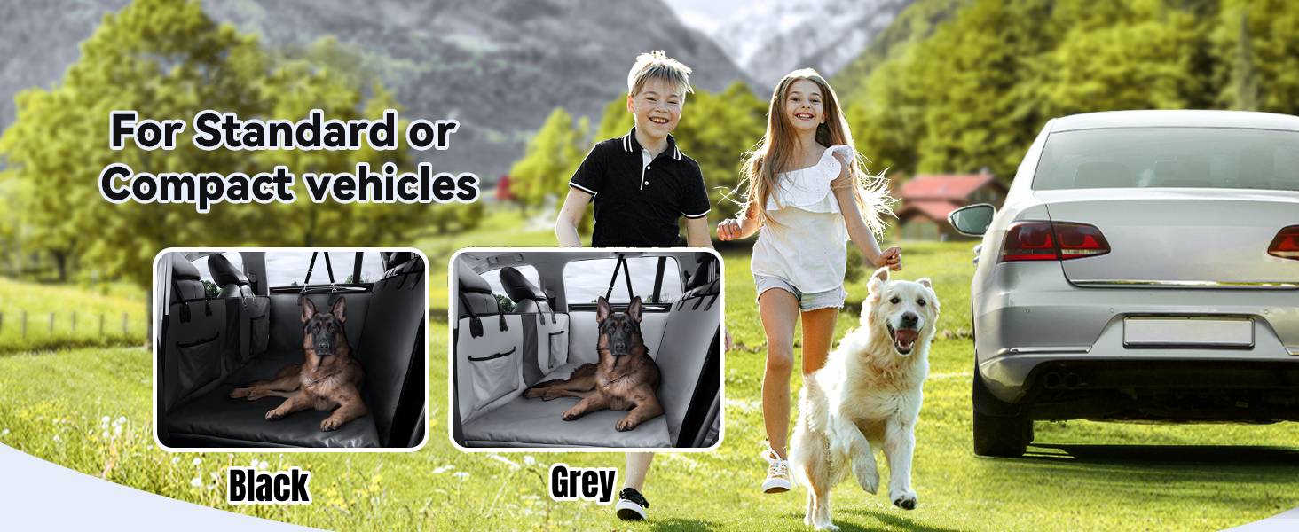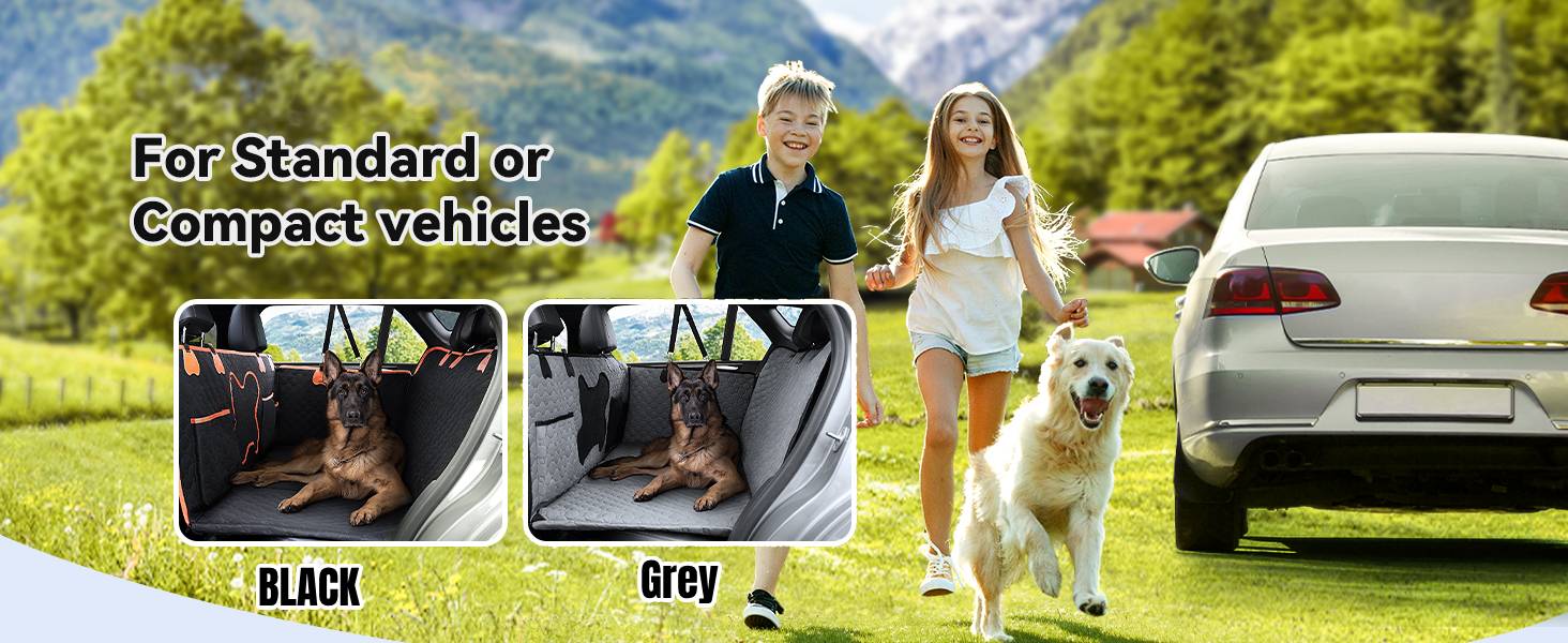Strong Support for Larger Dogs: Our hard bottom car seat cover for dogs features sturdy fiberboard; It can hold up to 280 pounds, suitable for large dogs or multiple dogs; Its foldable design adds versatility, allowing 1-2 family members to sit on the side of the dog seat cover when folded