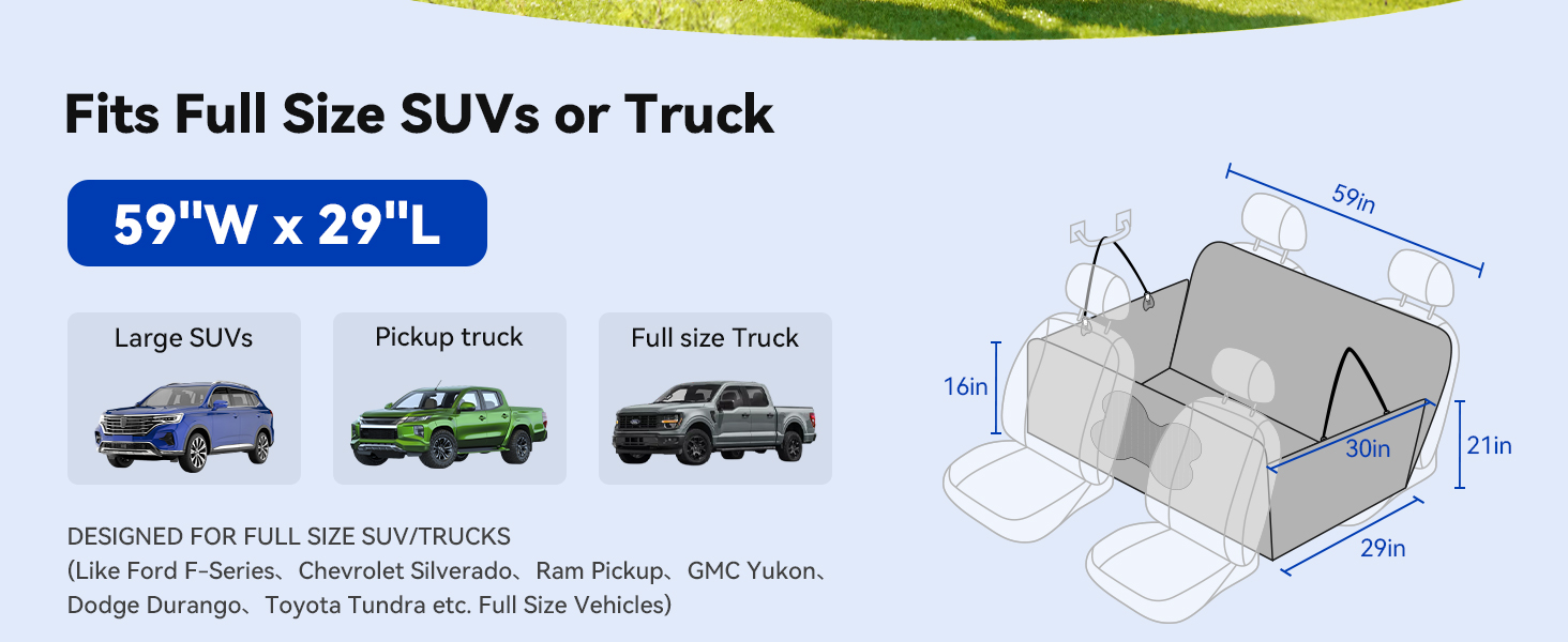 Back Seat Into Car Bed: We have increased the hardboard support and upgraded and optimized the back seat cover for dogs; The platform bridge has three platforms that maximize backseat space while giving pets double room and preventing them from falling off the seat; Fits backseat areas 58in x 28in and larger