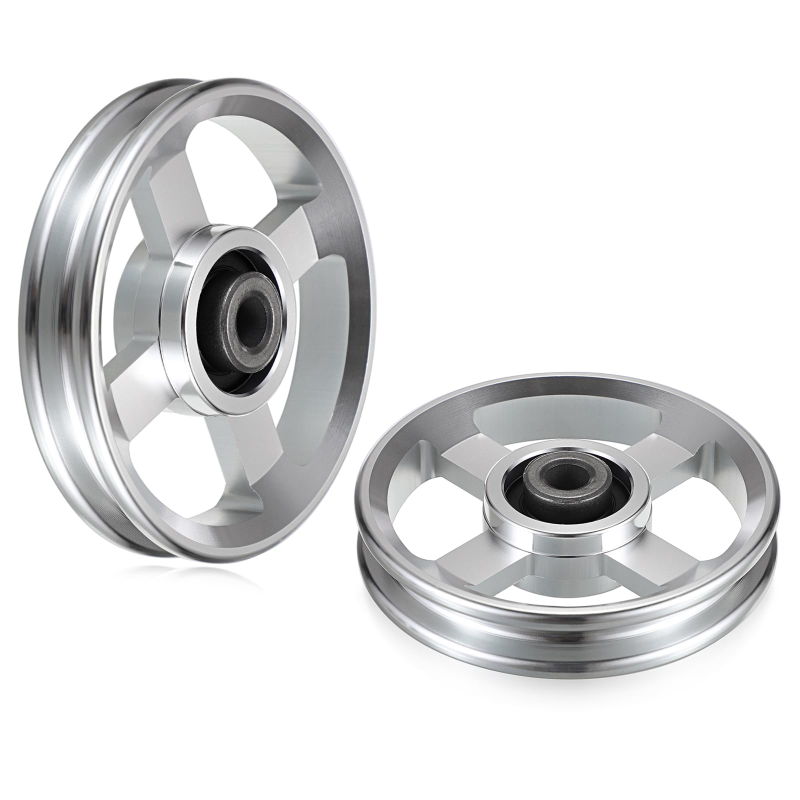 Smooth-surfaced aluminum alloy wheels can be used for home, gym or outdoor fitness equipments, weight pulley, cable pulley system, door exercise pulley or garage door pulley, as indispensable replacement wheels, making your training more precise and efficient.