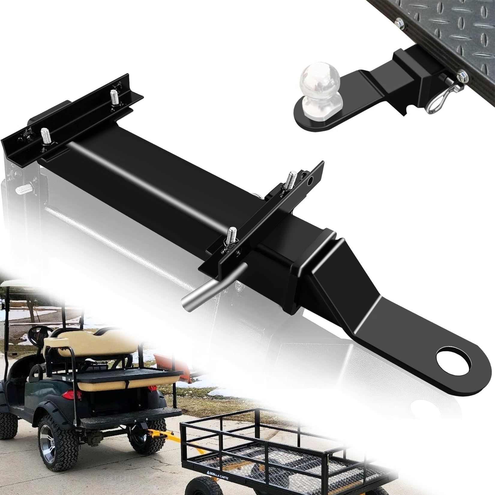 [Enhanced Golf Cart Versatility] The Golf Cart Trailer Hitch with 2" Receiver is designed to fit the back seat of most golf carts on the market. Compatible with popular brands like Club Car, EZGO, and Yamaha, this trailer hitch allows you to expand the functionality of your golf cart. The 2" receiver hitch accepts tow balls of any size, providing versatility for various towing needs.