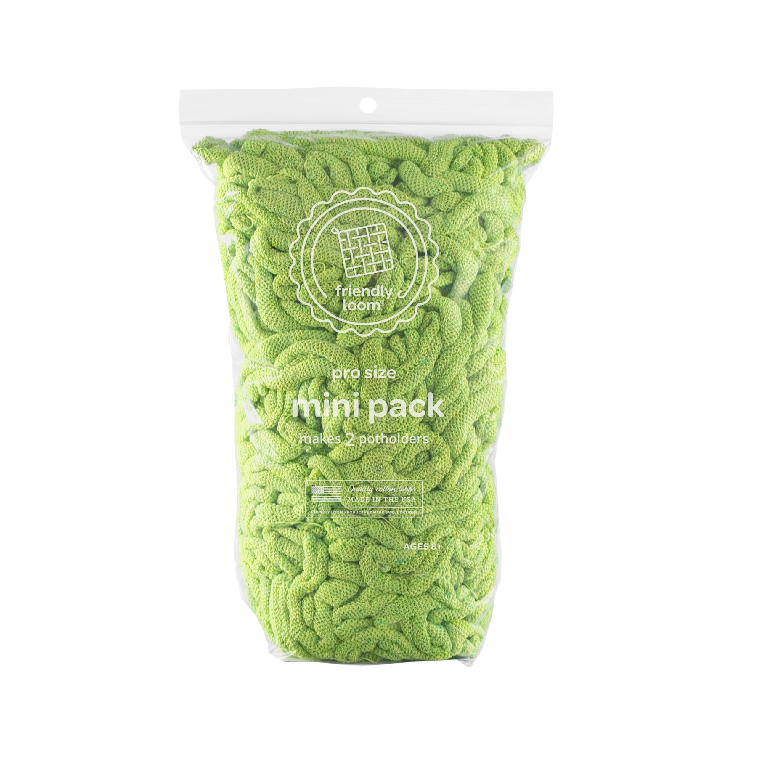 Harrisville Lime Cotton PRO Loops are custom-sized for our Potholder PRO Looms. Everyone loves making potholders and now there's even more to love with these extra-large loops. This bag contains enough lime-colored loops to make 2 full-size potholders. Use the loops to make potholders in a single color, or combine them with other colors in the Harrisville collection to create your own personalized rainbow design. Harrisville Designs is located in the Monadnock Highlands of Southwestern New Hampshire. A family owned business, Harrisville Designs was established in 1971. Our goal is to preserve and share the textile heritage of our small New Hampshire village, by providing the highest quality materials for easy projects you and your children can make at home. Children feel proud when they create beautiful, practical items they can use at home or give as gifts. Hand weaving, knitting and felting are wonderful intergenerational activities your whole family can share. All Harrisville products are 100 per cent made in the USA.