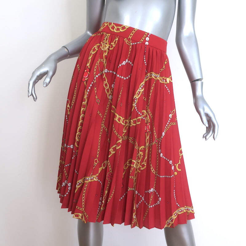 Balenciaga Sunray Pleated Skirt Red Chain Print Crepe de Chine Size 42