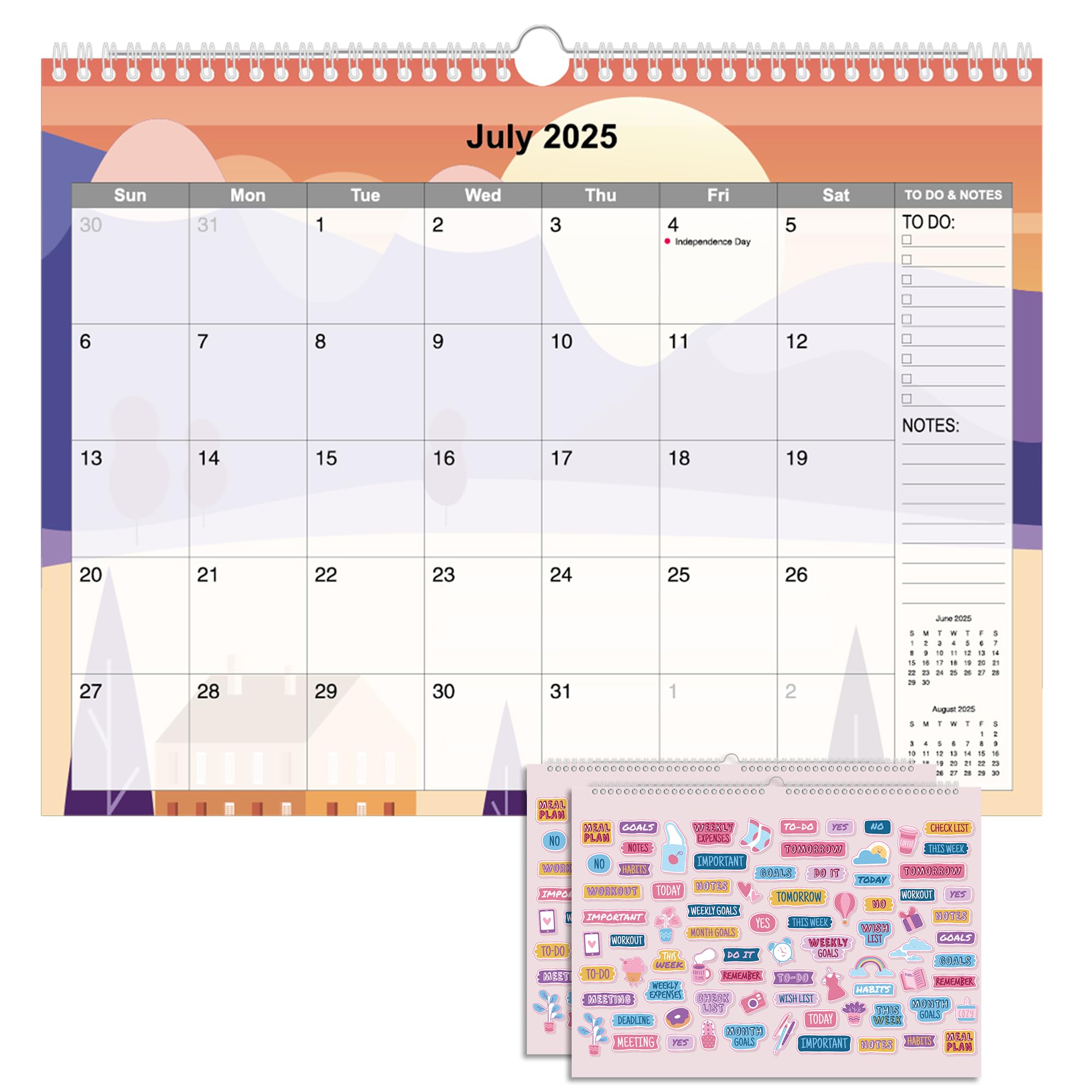 Calendar 2025-2026: The wall calendar contains 18 months and 2 pages of stickers. With the size of 14.5"X 11", there is plenty of space to record important events. Each monthly calendar page uses a different background pattern, allowing you to easily recognize the characteristics of each month and plan your activities more effectively.