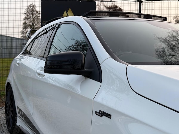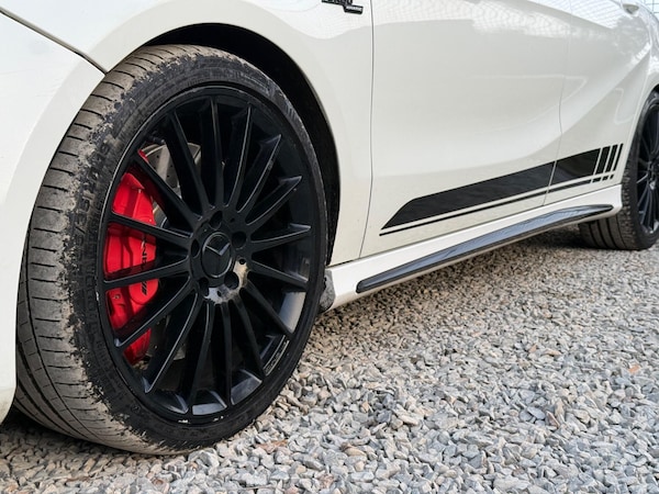 This 2017 Mercedes Benz A Class A45 AMG is a prime example of performance and luxury, boasting a clear vehicle history. Under the bonnet, you'll find a potent 2.0L petrol engine paired with a four wheel drive system, ensuring dynamic handling and power delivery. This Euro 6 compliant model comes equipped with a premium Harman Kardon Logic 7 surround sound system, offering an immersive audio experience. For enhanced safety and convenience, it features Distronic Plus adaptive cruise control, a Lane Tracking Package with blind spot assistance, and a rear camera for effortless parking. Completing the aggressive stance are 19 inch AMG multi spoke alloy wheels, finished in a striking matt black.The A45 AMG variant stands out from other vehicles in its class thanks to its exceptional combination of features. The inclusion of advanced driver assistance systems like Distronic Plus and the Lane Tracking Package demonstrates a commitment to both safety and a relaxed driving experience. Coupled with the superior Harman Kardon sound system and the distinctive matt black AMG alloy wheels, this Mercedes Benz A Class offers a truly premium package that elevates it above the ordinary.