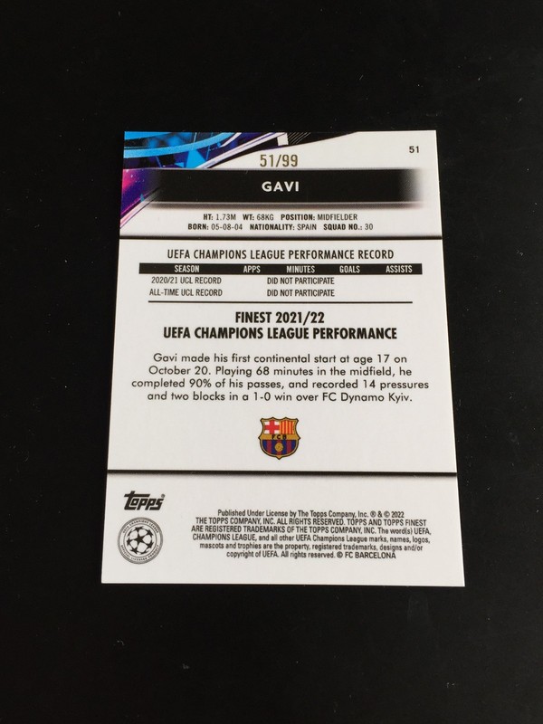2021-22 Topps Finest UEFA Gavi Rookie RC Green 51/99 Barcelona Spain