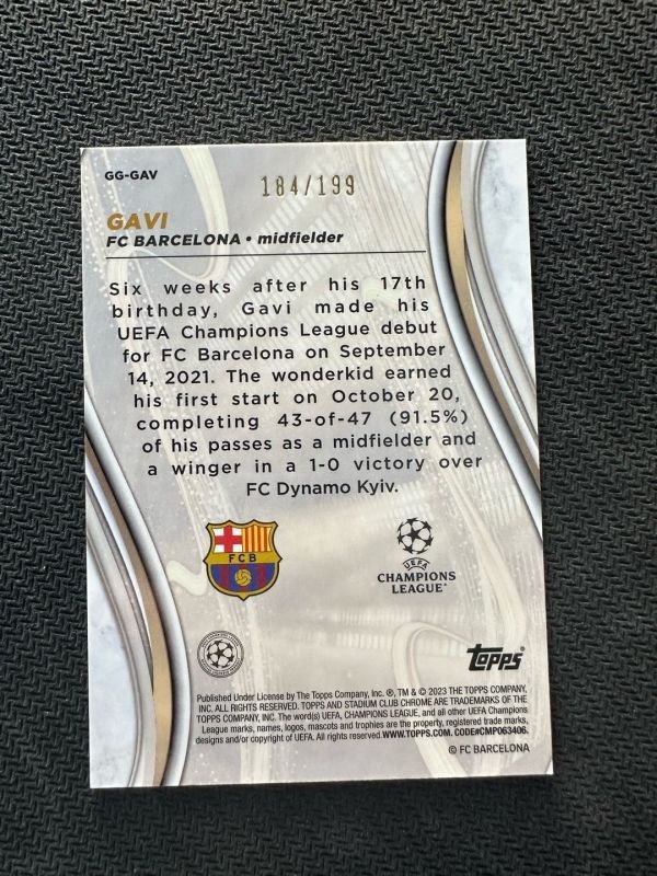 2023 Topps Stadium Club Chrome Gavi gold 184/199 s18