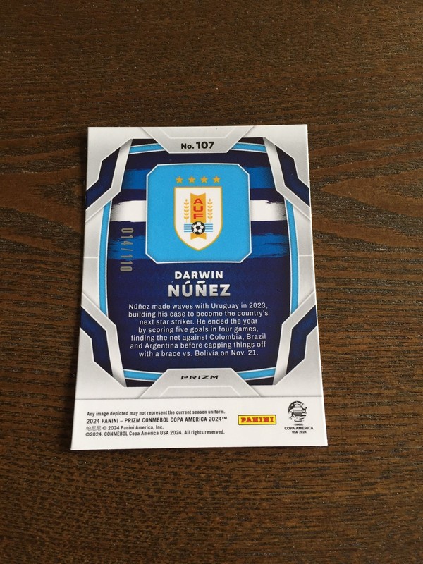 2024 Panini Prizm Copa America Darwin Nunez Blue 14/110 Uruguay Liverpool