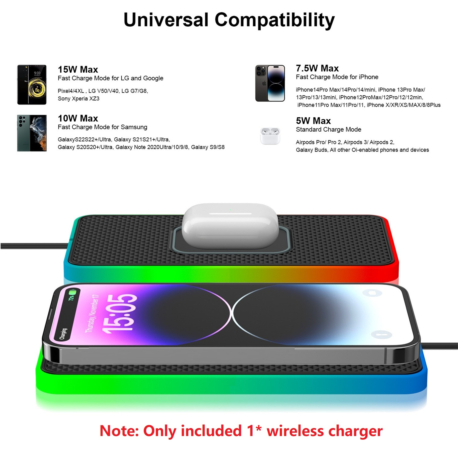 NEW RGB Silicone Non Slip Pad Car Wireless Phone Chargers Fast Charging Station