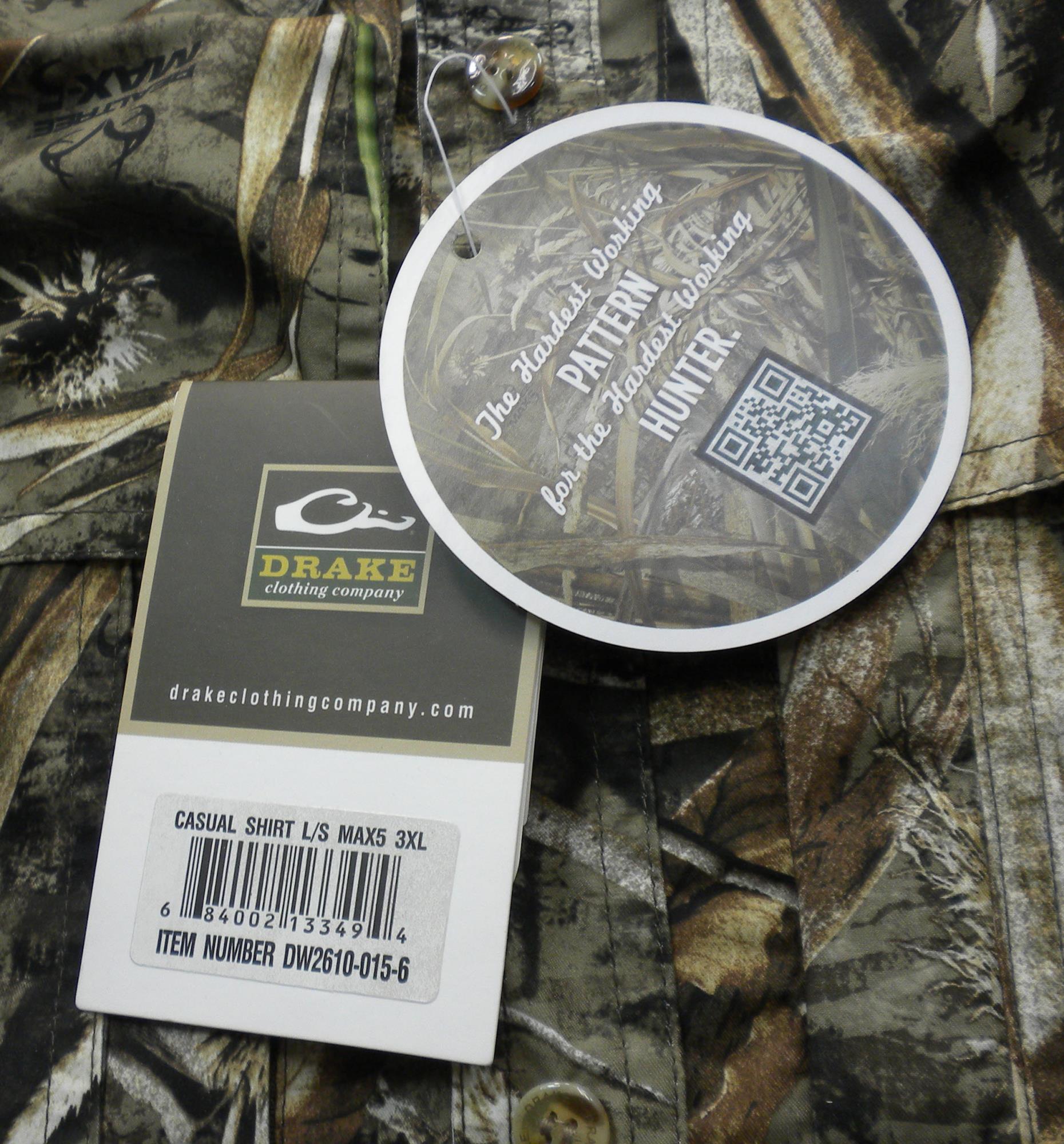 Drake 26100155-3X Uccello Acquatico Ls Ventilato Mimetico Casual Camicia Lungo