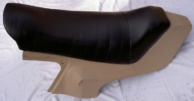 Ducati 500 Pantah del 1980, la sezione della coda del sedile abbinata in un'altra inserzione era verniciata con primer, senza codice. Si adatta alle sezioni del sedile a volte disponibili altrove in questo stesso negozio che misurano 29" = 740 mm di lunghezza, 13,5" = 336 mm di larghezza e 23,75" dal bordo anteriore all'estremità dell'area sulla gobba dove termina il rivestimento (non all'estremità della coda).
