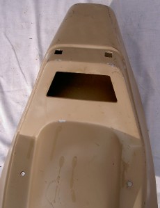 La tappezzeria qui inclusa misura 26,25" = 665 mm, per 11 = 280 mm di larghezza, più circa 8" = 205 mm di altezza. Nuovo di zecca, ma alcune ammaccature nello stoccaggio e la fibra di vetro posata a mano è molto rozza! Alcuni bordi sono allentati perché la colla è molto vecchia. Alcuni sedili includono cinghie che non devono essere utilizzate.