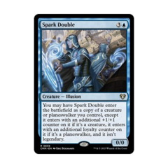 You may have Spark Double enter the battlefield as a copy of a creature or planeswalker you control, except it enters with an additional +1/+1 counter on it if it’s a creature, it enters with an additional loyalty counter on it if it’s a planeswalker, and it isn’t legendary.
