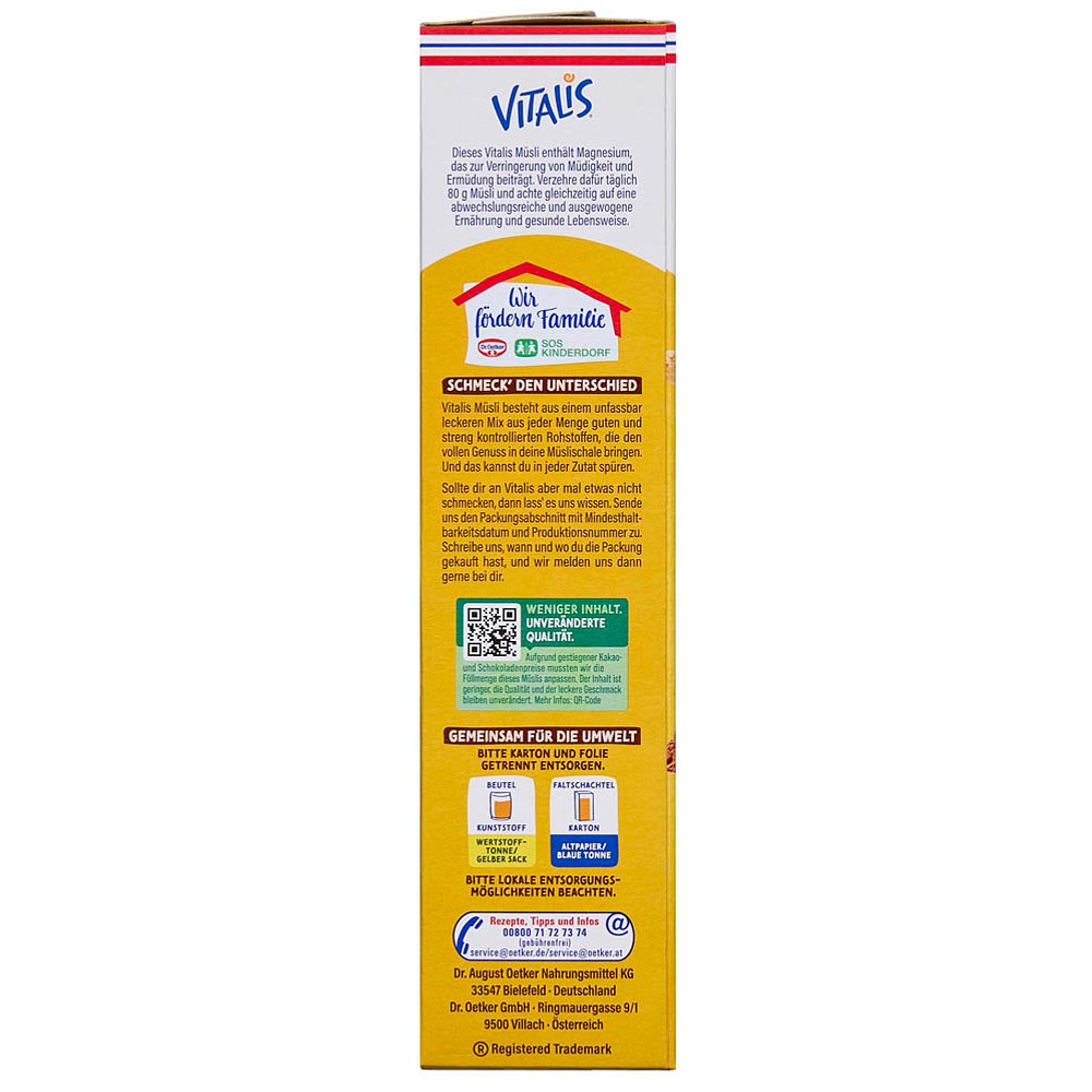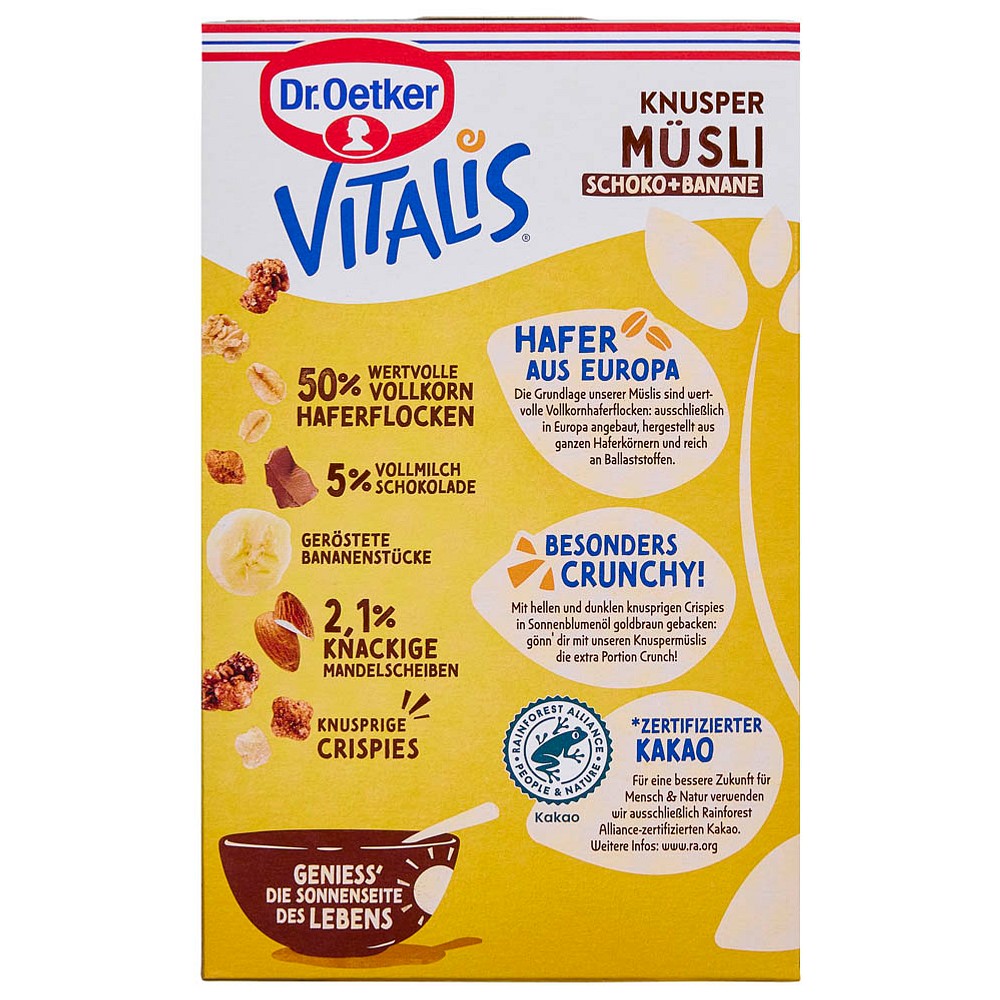 Köstlicher Schokoladen-Genuss: Dr. Oetker VITALIS KNUSPER SCHOKO+BANANE Müsli 450,0 g