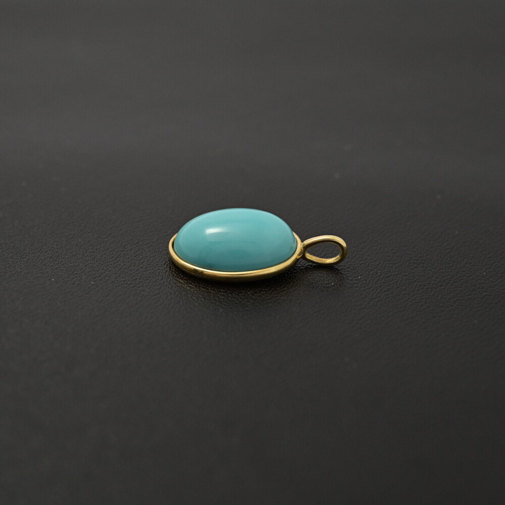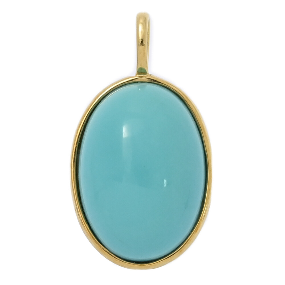 | 説明 | 12月の誕生石であるターコイズは、18Kイエローゴールドの金属の上に、地中海を思わせるような青緑色を静かに輝かせています。4カラットのターコイズはオーバルカボションカット。指先でその滑らかなドームに触れるたびに、鉱物でありながら不思議な温かさと心地よさを感じます。 ターコイズは、古代から人類が大切にしてきた宝石の一つです。古代エジプトの女王からネイティブアメリカンの戦士まで、人々は空と大地が溶け合うかのようなその色に守護の力を見出してきました。カボションカットの表面は光を吸収し、柔らかく反射するため、見る角度によって海の深さのように色合いが変化します。750イエローゴールドの温かみが、ターコイズの青をより深く鮮やかに見せます。 わずか1.7gの軽さは、親しみやすく、毎日身につけたくなるような心地よさを与えてくれます。 冬はニットの胸元に、夏はリネンシャツの鎖骨に着けてみてください。季節を問わず、このペンダントトップを着るたびに、まるで遠い異国へ旅をしているような、ささやかな冒険の思い出が蘇ります。 |