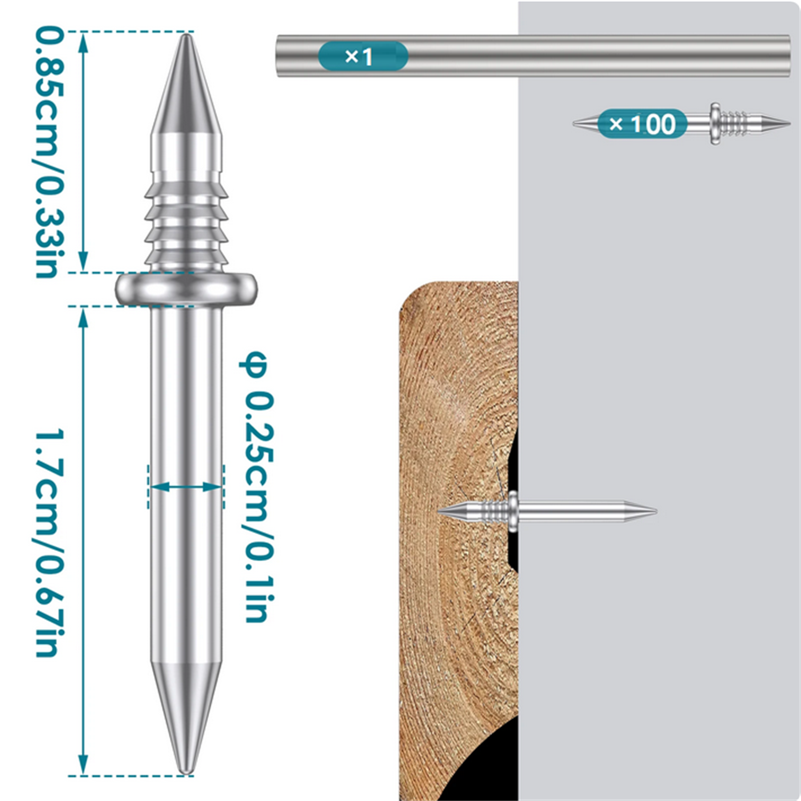 Metal Material: The skirting thread seamless nail is made of metal, and the thread surface is complete and smooth. The force is balanced, and the length is 25.5mm. The nail has strong grasping force and not easy to detach.