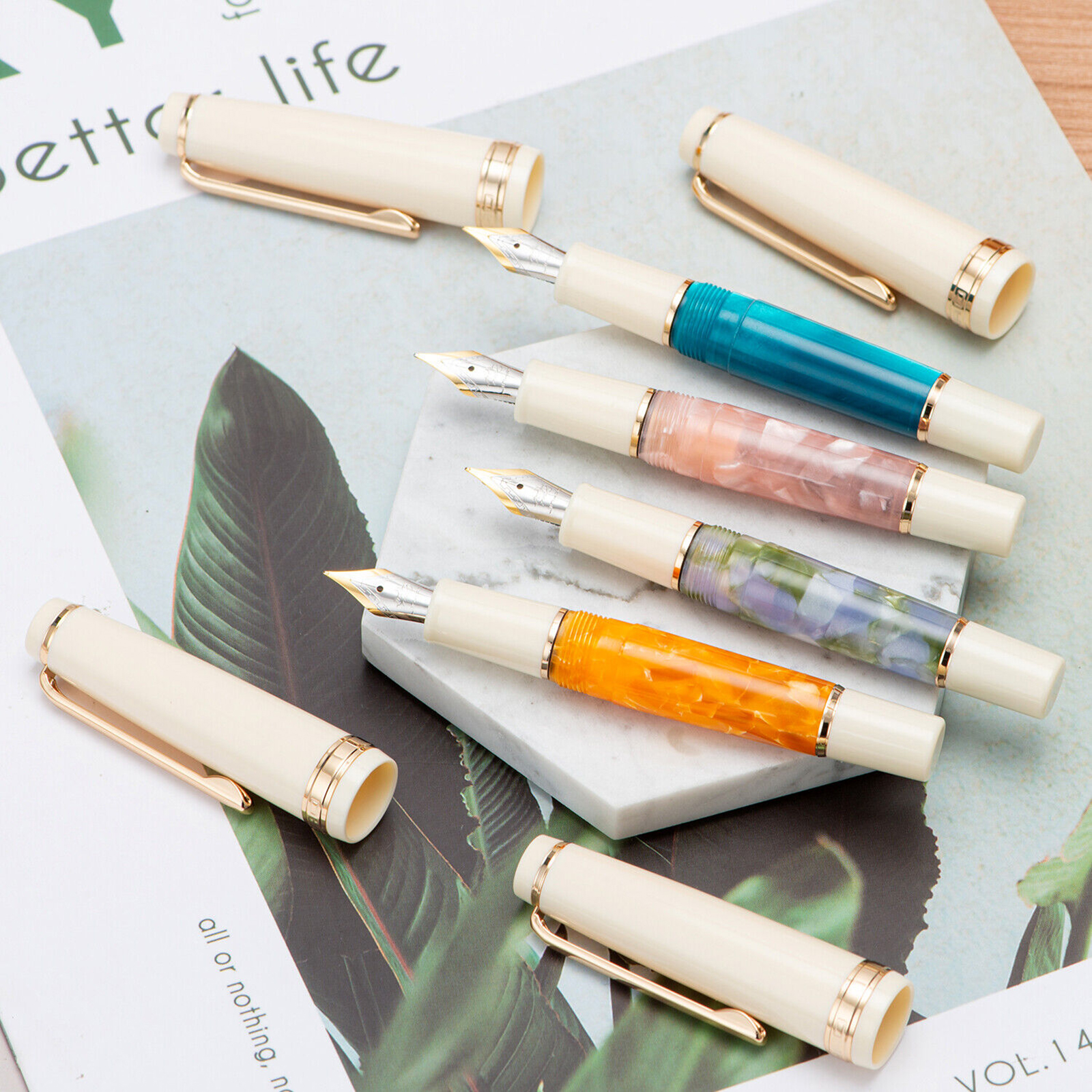 New Screw Cap F Nib 0.5mm Fountain Pen Beautiful Acrylic Short Pocket Pen