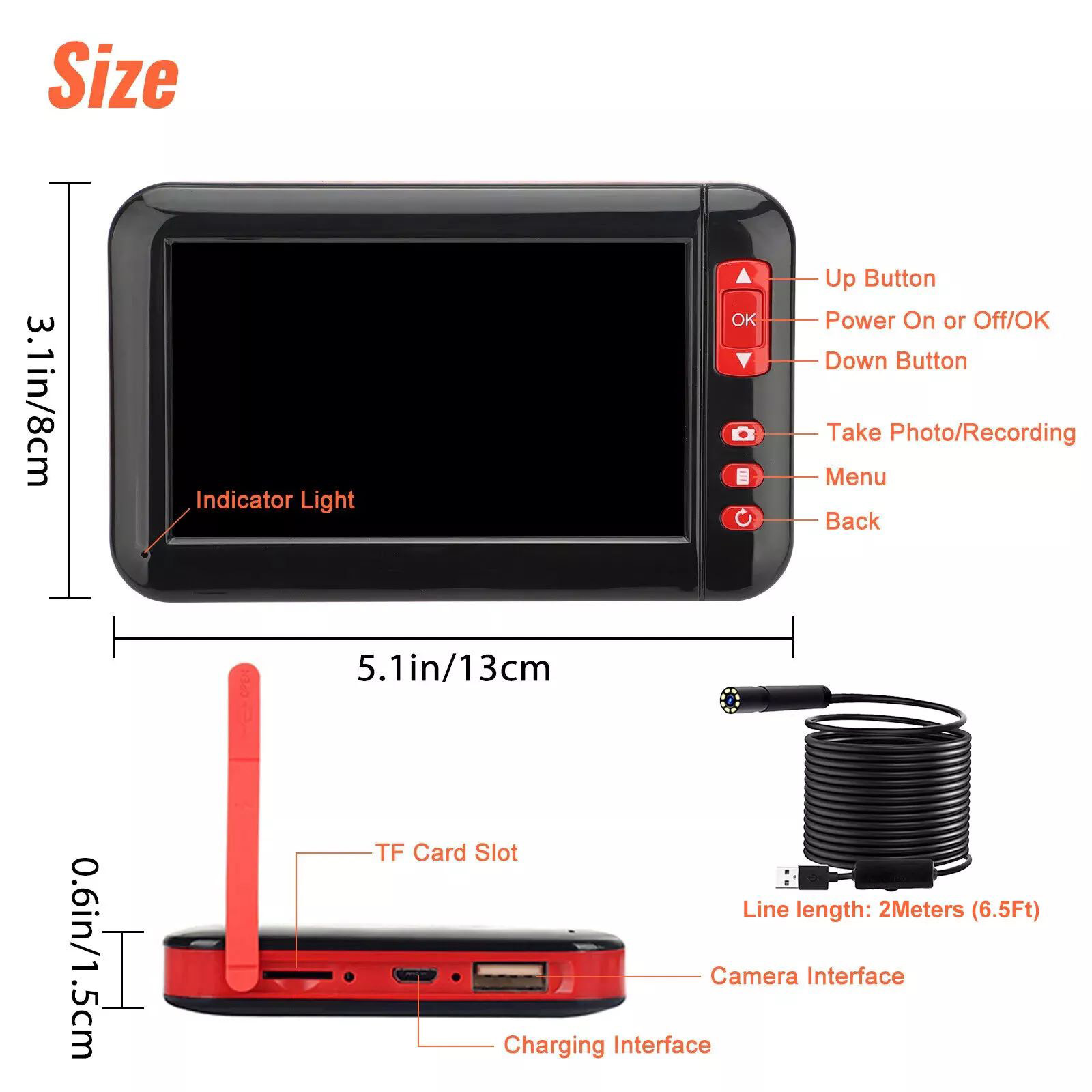2M/6.5Ft Industrial Endoscope - IP67 Waterproof, 4.3-inch HD Color Screen