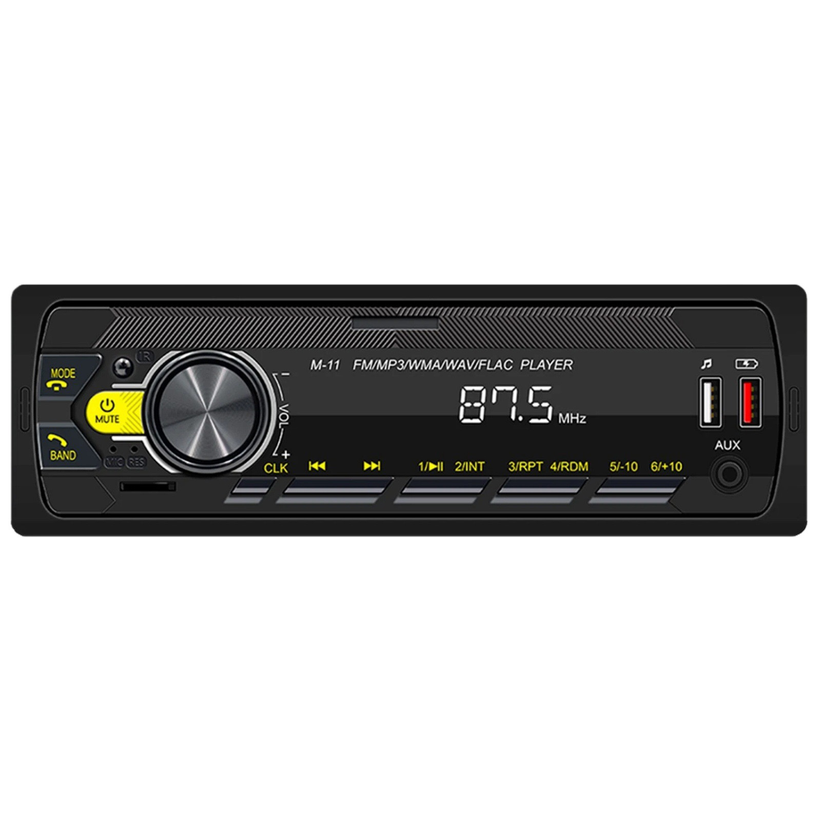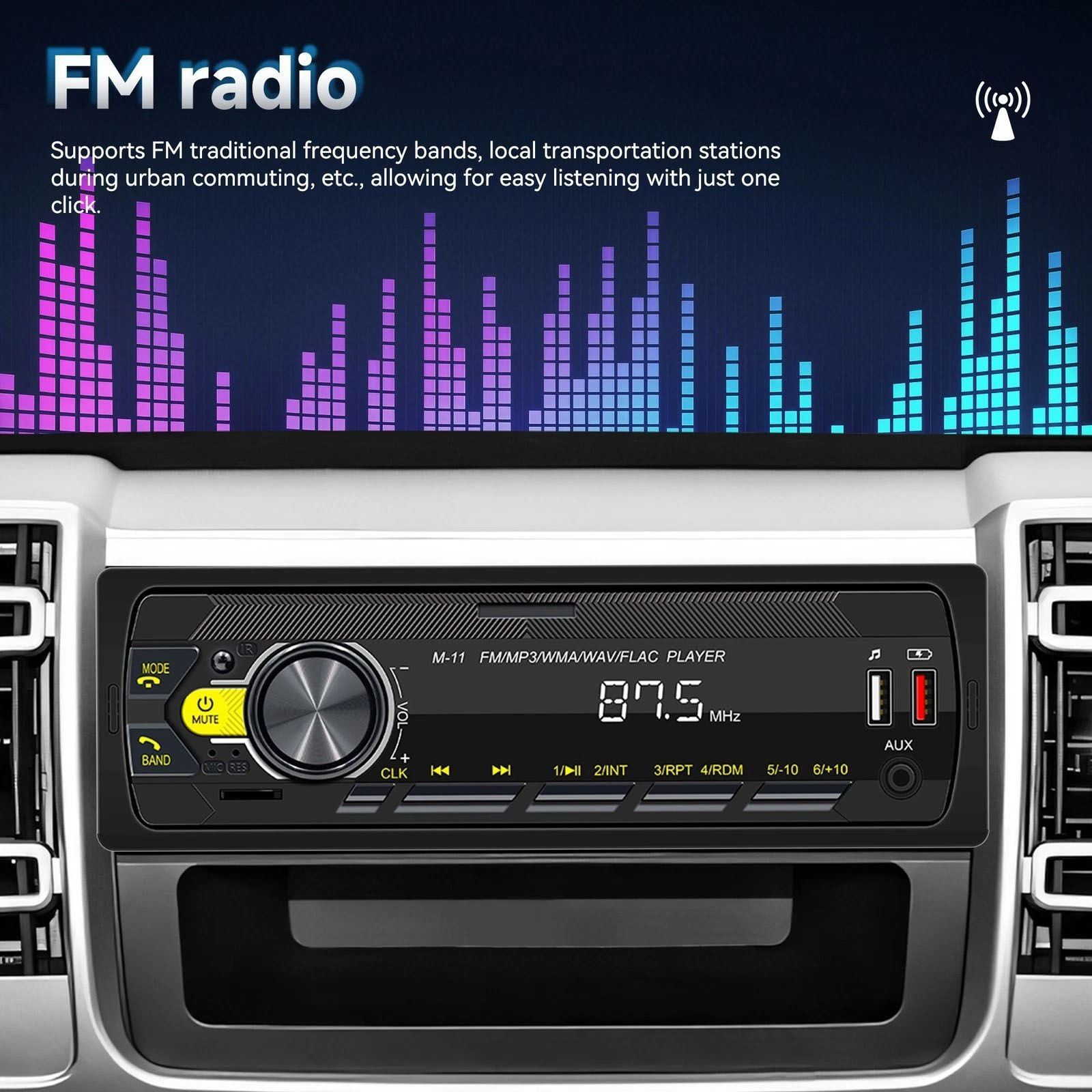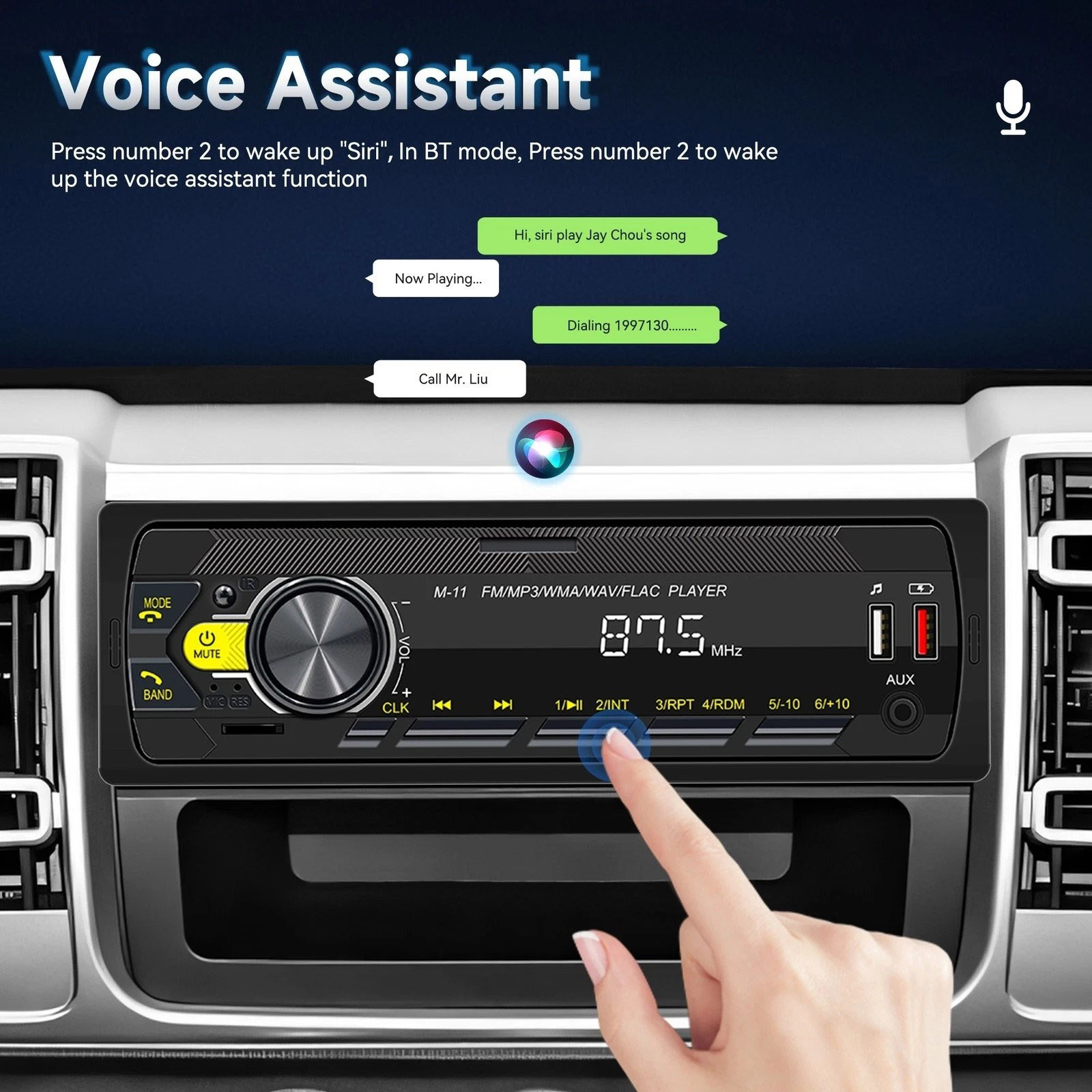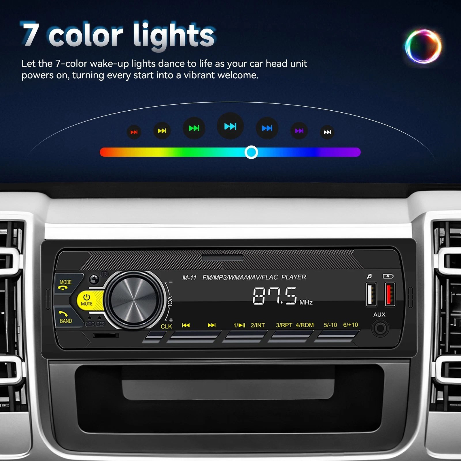 Multiple Function: This bluetooth car stereo with for bluetooth 5.0 Hands Free Calling | FM | remote control | fast charging | 7 color button lights | Voice Control | Multiple Media Playback