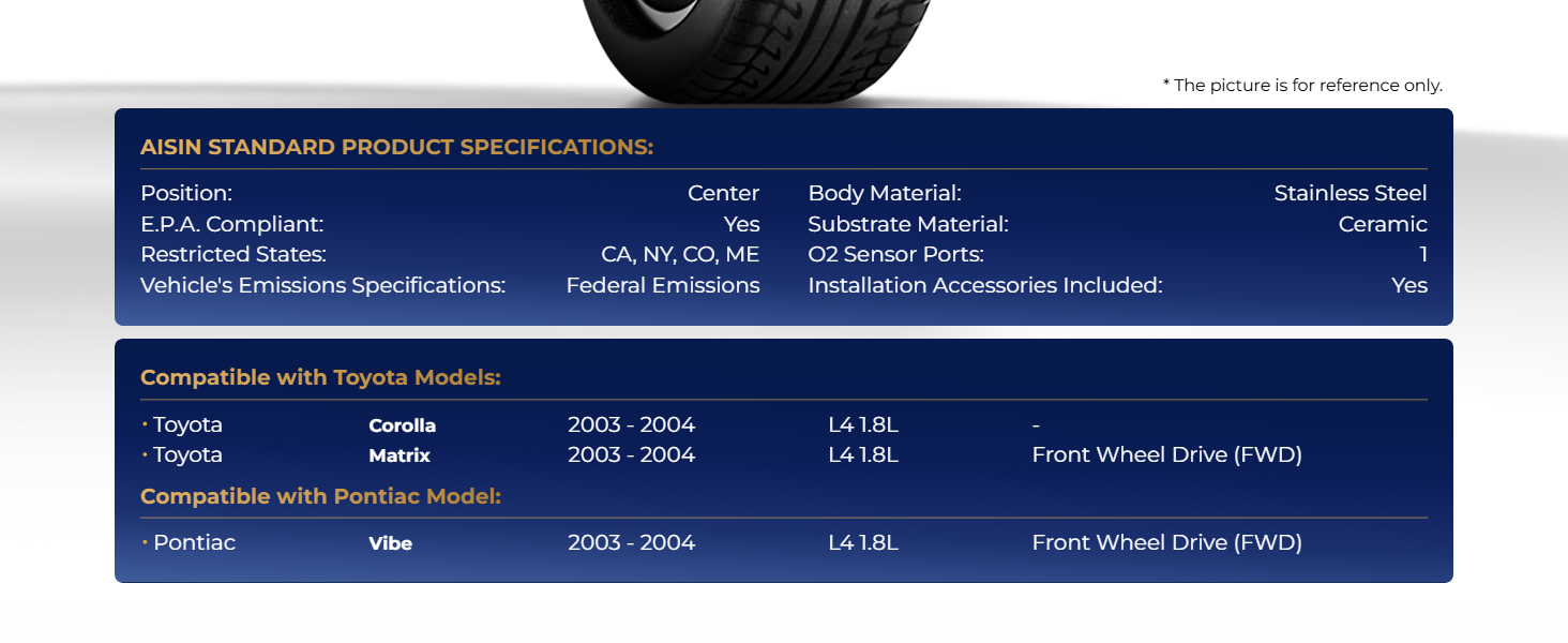 AISIN CCTAZ-00553 Center Catalytic Converter for Toyota Corolla Matrix 2003 2004