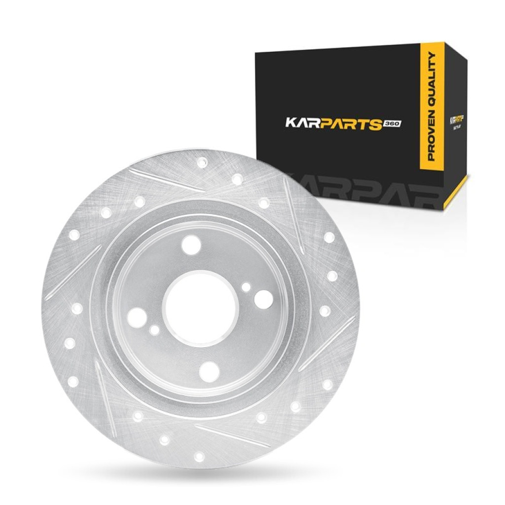 | Detail Product Information | Product Info: Part: Brake Rotor Color: Silver Drilled and Slotted Center Hole Diameter: 54 millimeters / 2.13 inches Discard Thickness: 8 millimeters / 0.31 inches Nominal Thickness: 9 millimeters / 0.35 inches Outside Diameter: 242 millimeters / 9.53 inches Stud/Lug Hole Quantity: 4
