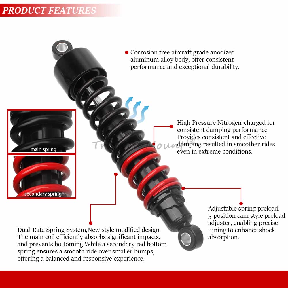 over smaller bumps, offering a balanced and responsive experience.The color and design perfect for decorating your motorcycle,Very eye-catching and can make your motorcycle the center of attention.