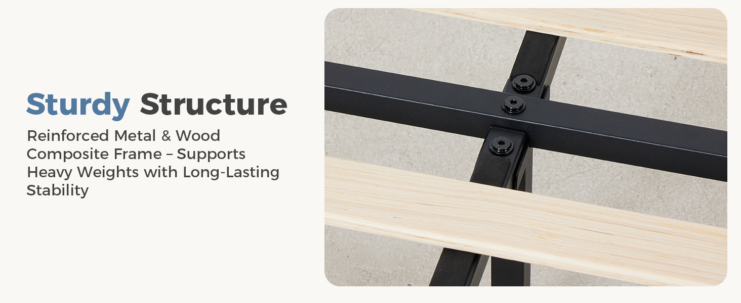 【Sturdy Support & Easy Assembly】Built for peaceful rest. A robust hybrid frame and strong wooden slats ensure exceptional stability, eliminating the box spring. Enjoy quiet, noise-free sleep. Easy assembly with all tools included.