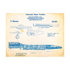 Includes 2 sheets that contain the Valley Forge, U.S.S. Enterprise, Battlestar, and Orion Shuttle